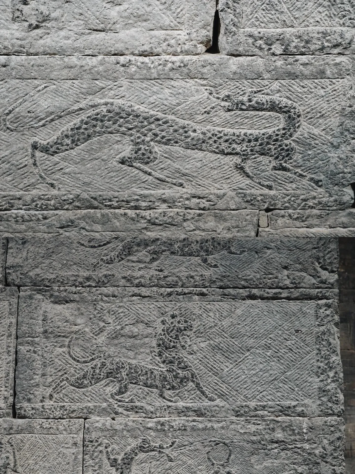 东阙上的雕刻极为精美 ,展现了丰富的古代艺术和文化元素: