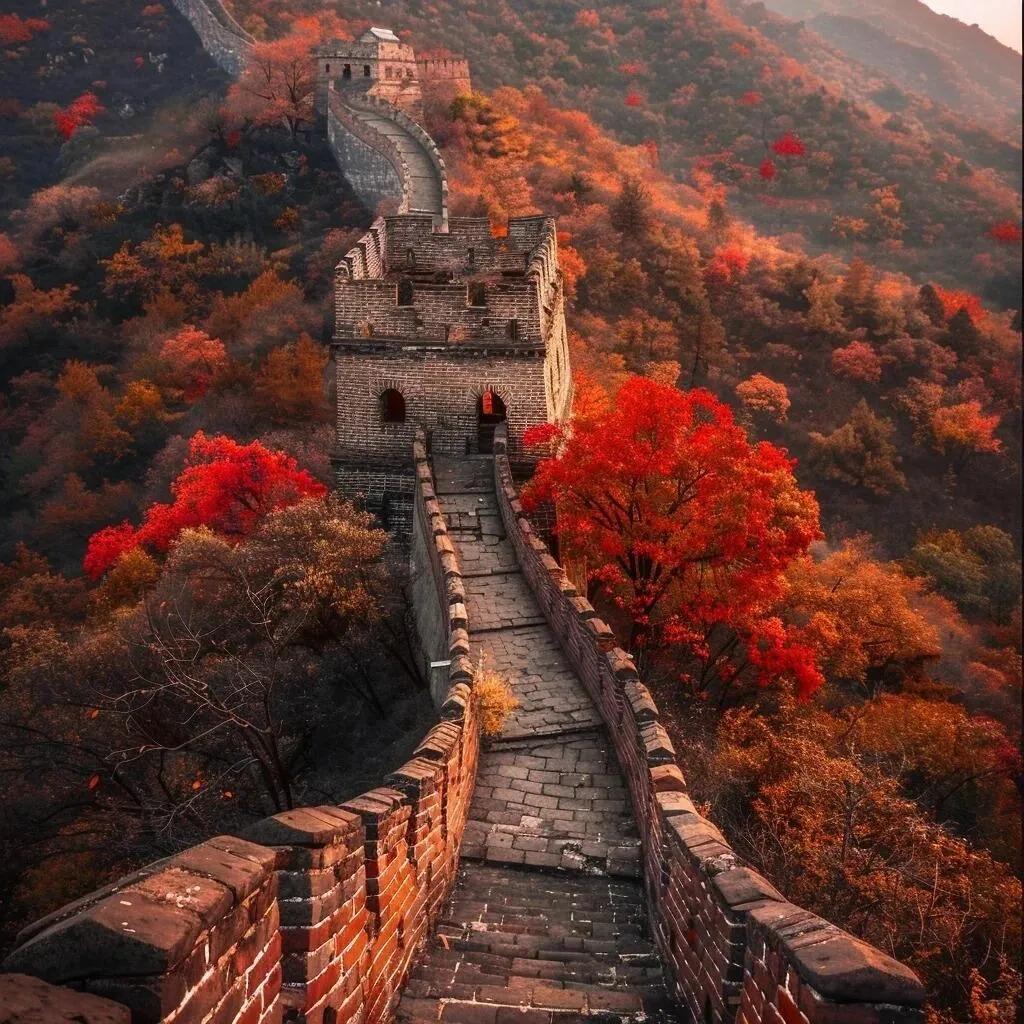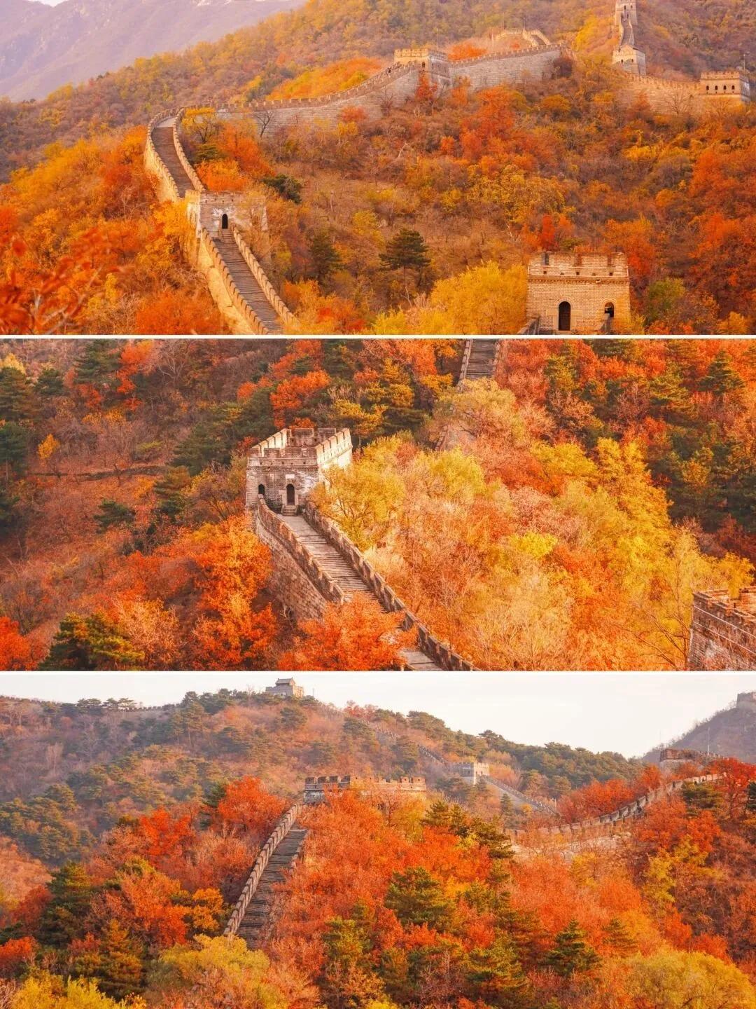 八达岭长城虽然游客众多,但景色绝美 。其中的红叶岭尤其出片,建议乘坐缆车俯瞰,宛如油画般壮丽。慕田峪长城的景色不输八达岭,特别受外国游客青睐,除了美景,还有刺激的滑道可以体验。
