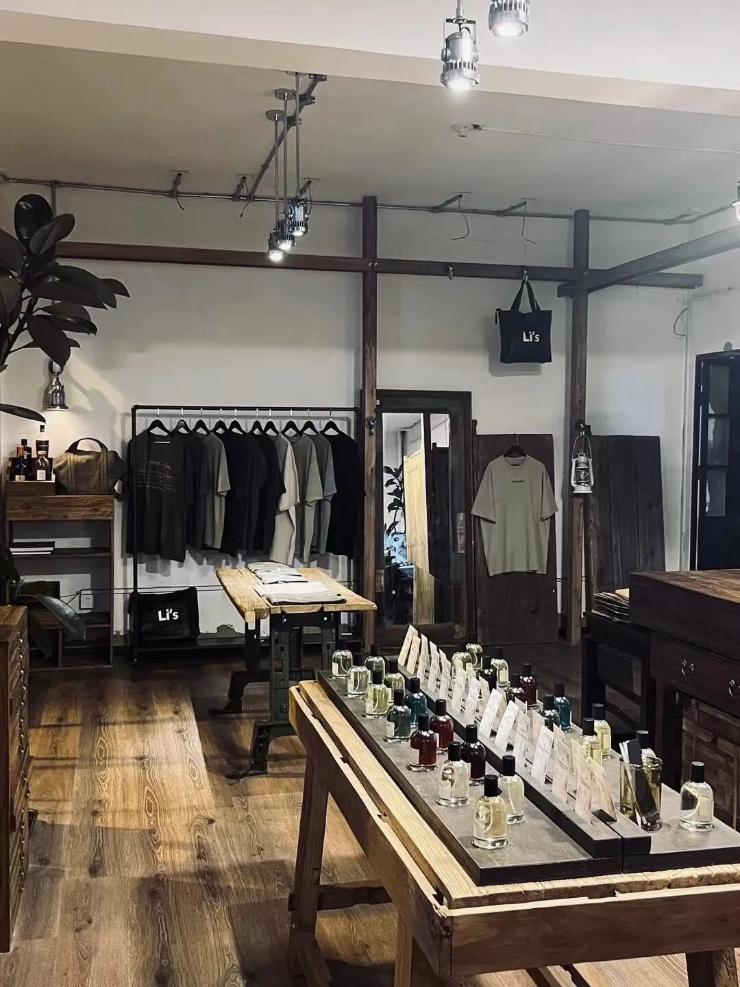 骑到气象路,无意间发现一家香水店Li's labo,极简风跟le labo很像。我被一款名为713的木质调香水吸引(橡木苔、檀香、高沙草、黄葵等木调)。虽然价格不菲,但还是决定买下寄回家,并抽了3ml小瓶随身携带。店员很nice,聊了很久还送了一杯黑咖。顺道买了件oversize的T恤,质量很好,以至于第二天忍不住又去买了件。