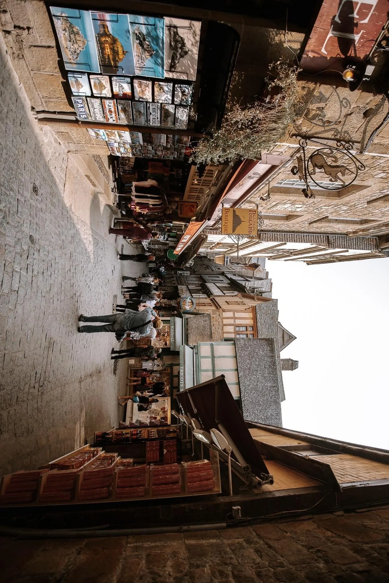 走进圣米歇尔山,蜿蜒的街道上游客如织,商店和旅馆林立,有点像诺曼底版的九份。但考虑到圣米歇尔山作为宗教圣地的历史,这样的景象似乎也就不足为奇了。 在英法百年战争期间,圣米歇尔山成功抵御了英格兰人的多次围攻 ,这段历史更增添了它作为法国象征的意义,也启发了包括圣女贞德在内的许多法国人。