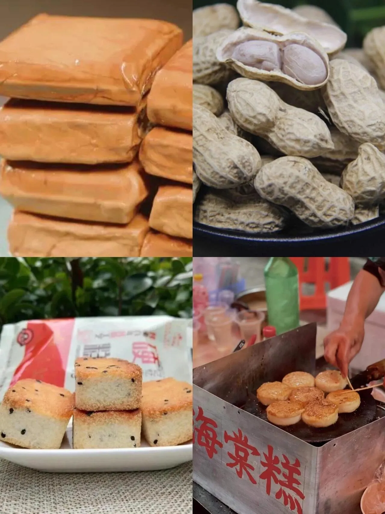 海棠糕:外皮烤得焦脆,内里糖能拉丝。可在东沙古镇购买。