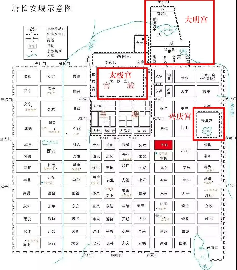 这里有必要介绍一下当时唐长安宫城的建筑布局。
