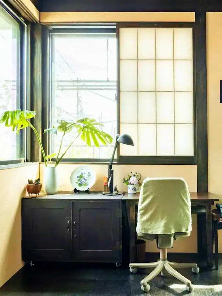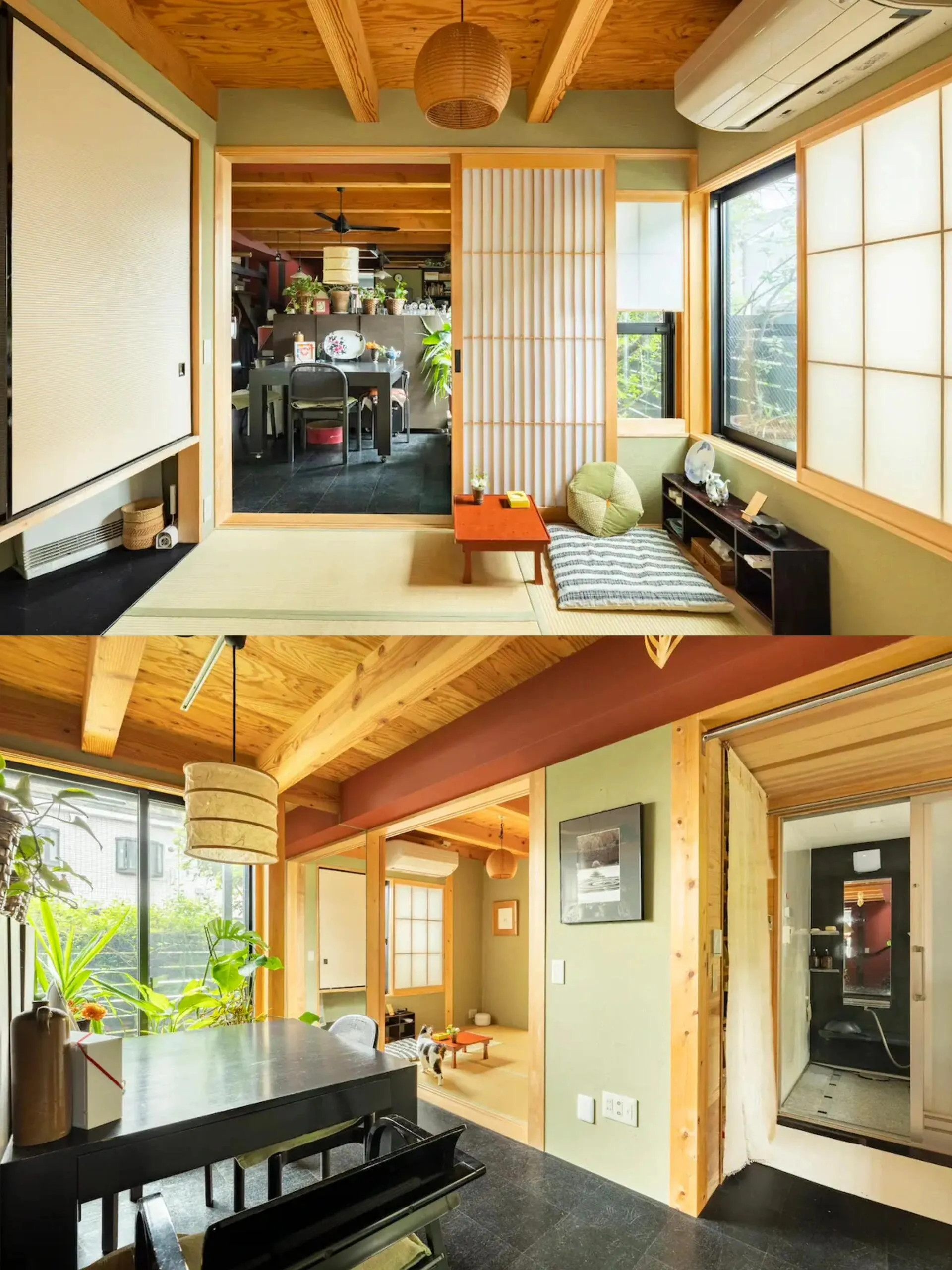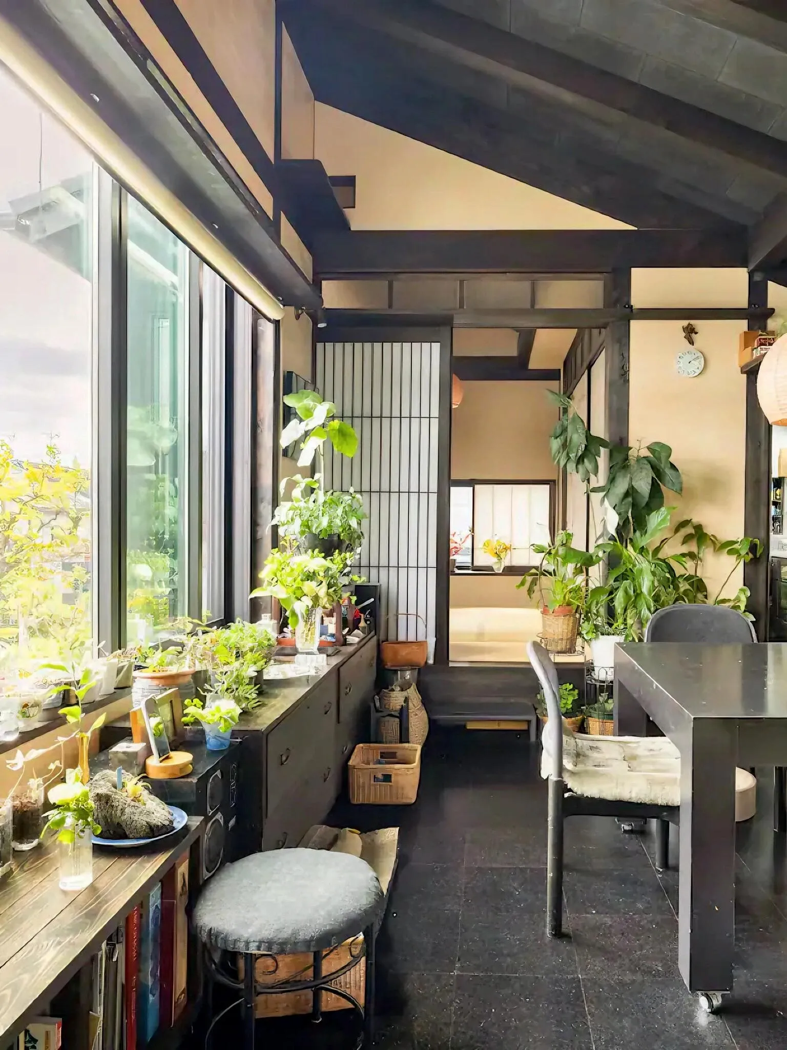 这是一间传统的日式旅馆,房子是典型的传统住宅 ,温馨舒适,设计精美,到处都是植物和有趣的艺术品。一楼的榻榻米房间感觉像家一样舒服,有独立卫生间。