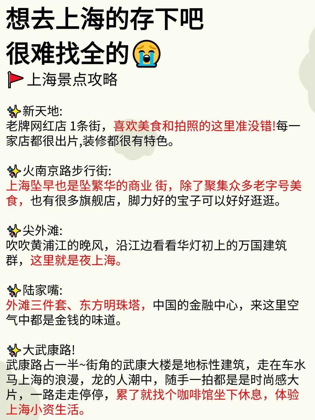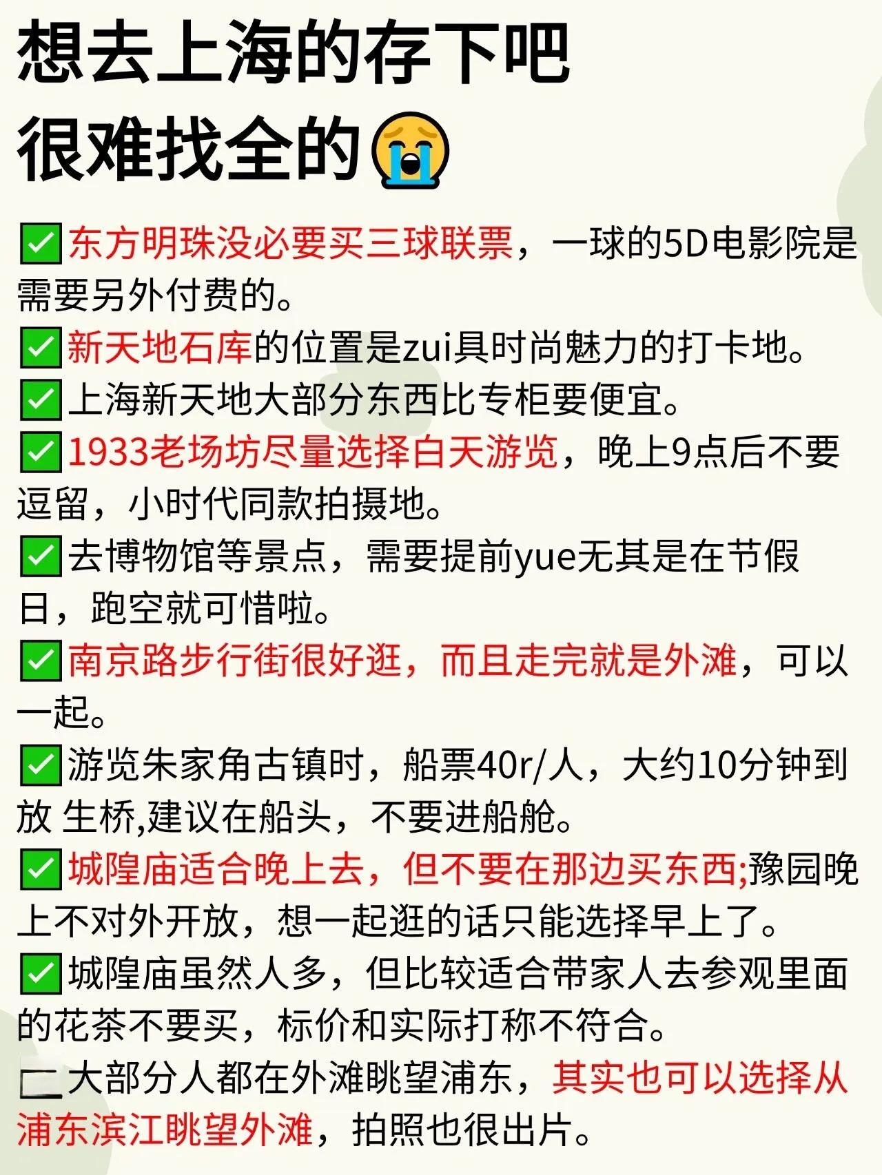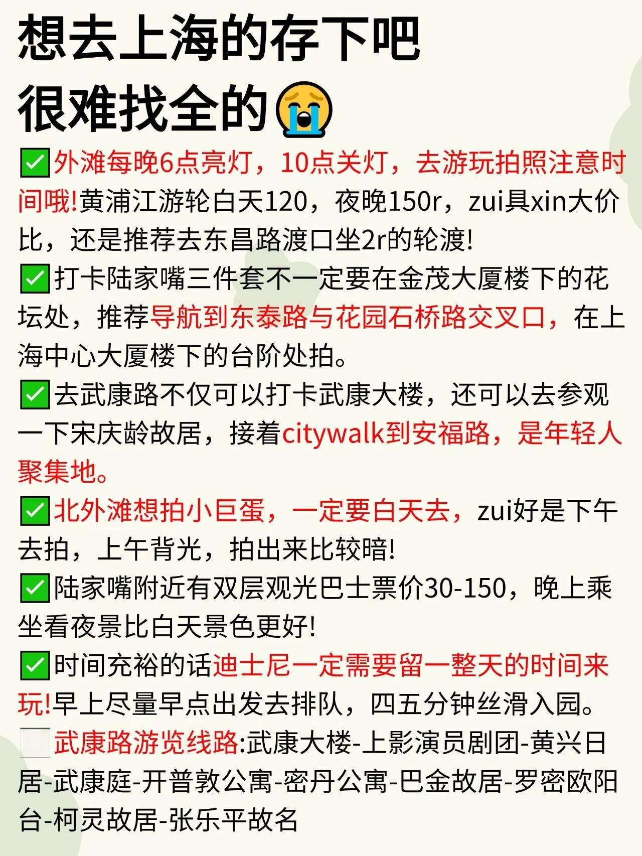 大家8月份都已经放暑假了吧!想要去旅游可以考虑上海!好吃又好玩,超适合学生党、情侣和家庭出游。本人去过了3次上海,亲自整理了这份超全避雷攻略,都是亲身游玩后的体验感受,希望能帮助到要来上海旅游的朋友们。