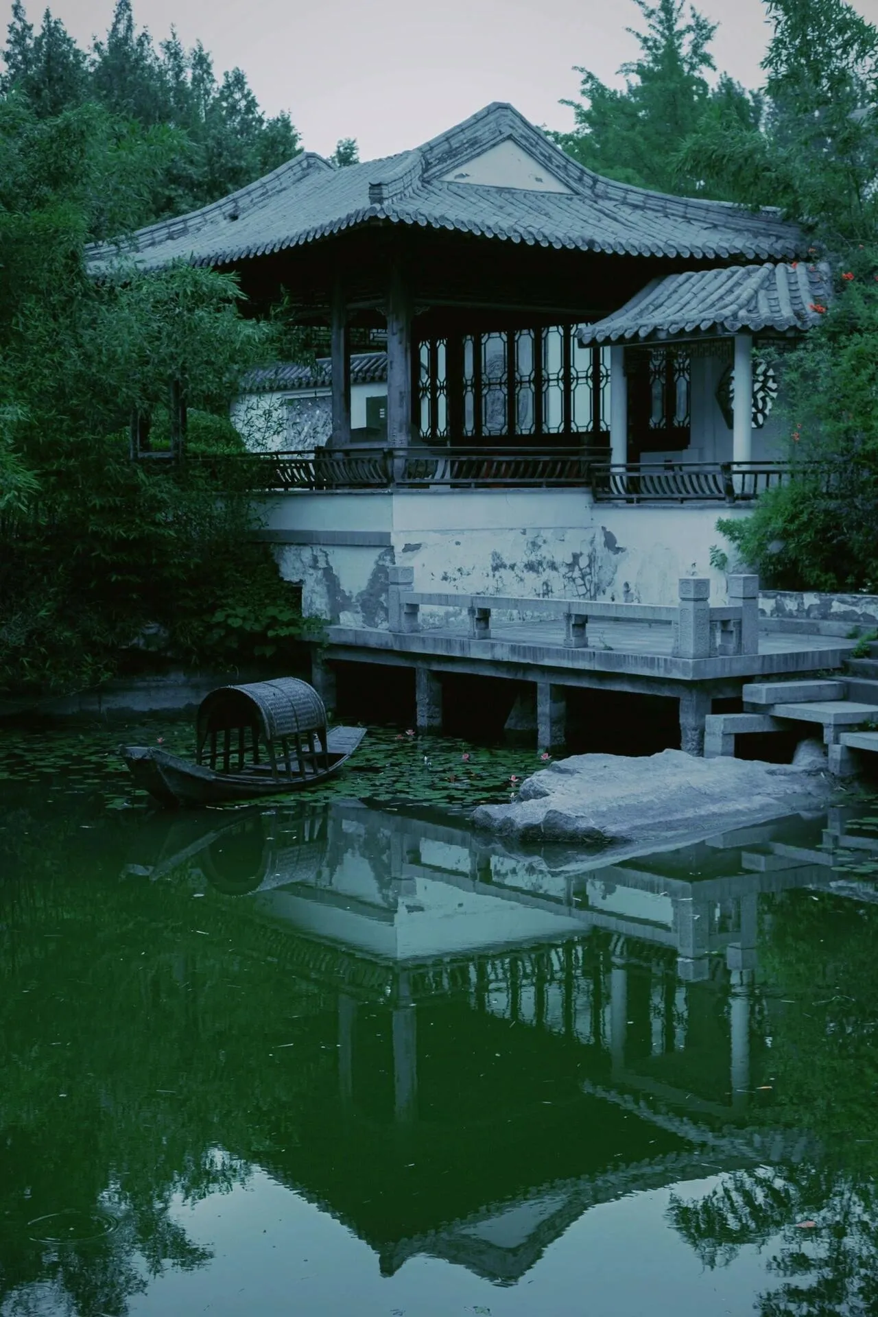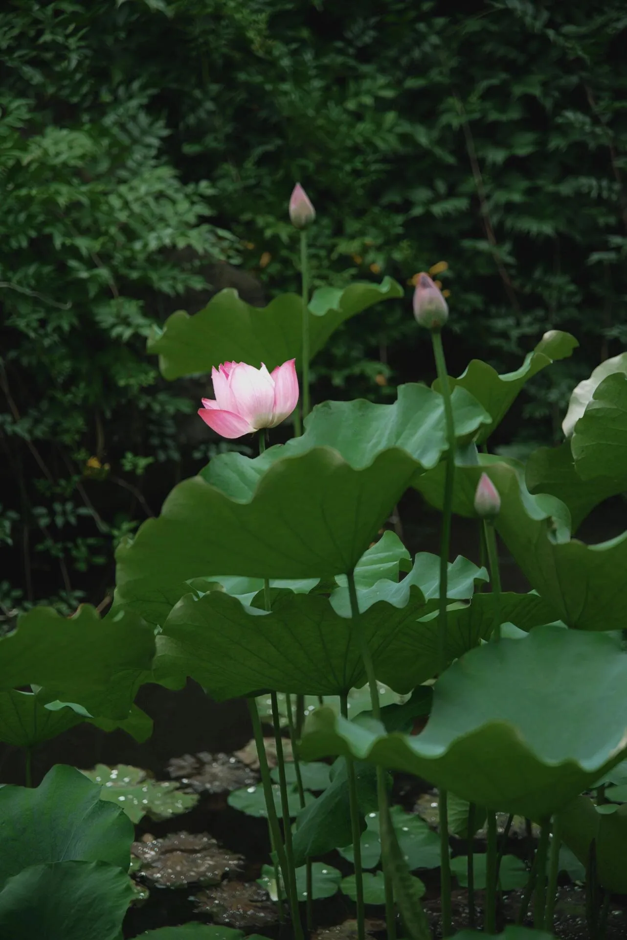 清风拂过,碧绿的藕荷簇拥着一叶孤舟在池中漂泊。这一幕不禁让人想起古人“青衫烟雨晩行舟”的诗情画意,也让人体会到苏轼“一蓑烟雨任平生”的豪放不羁。