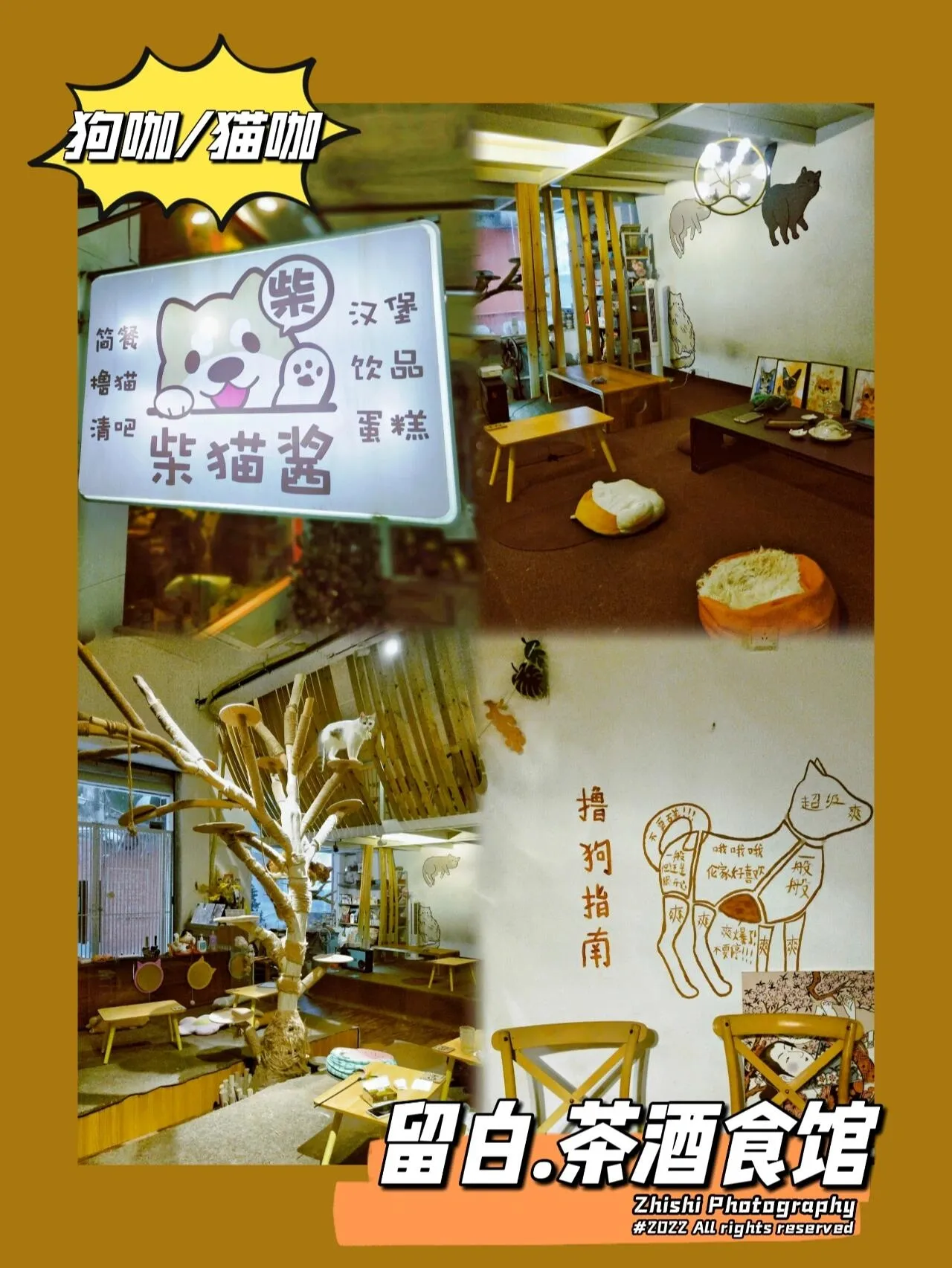 复式结构的双层装修,店中央的多层猫爬架很可爱。超多品种的猫猫和三只镇店柴犬,朋友聚会一边撸狗吸猫再喝喝茶也不错。