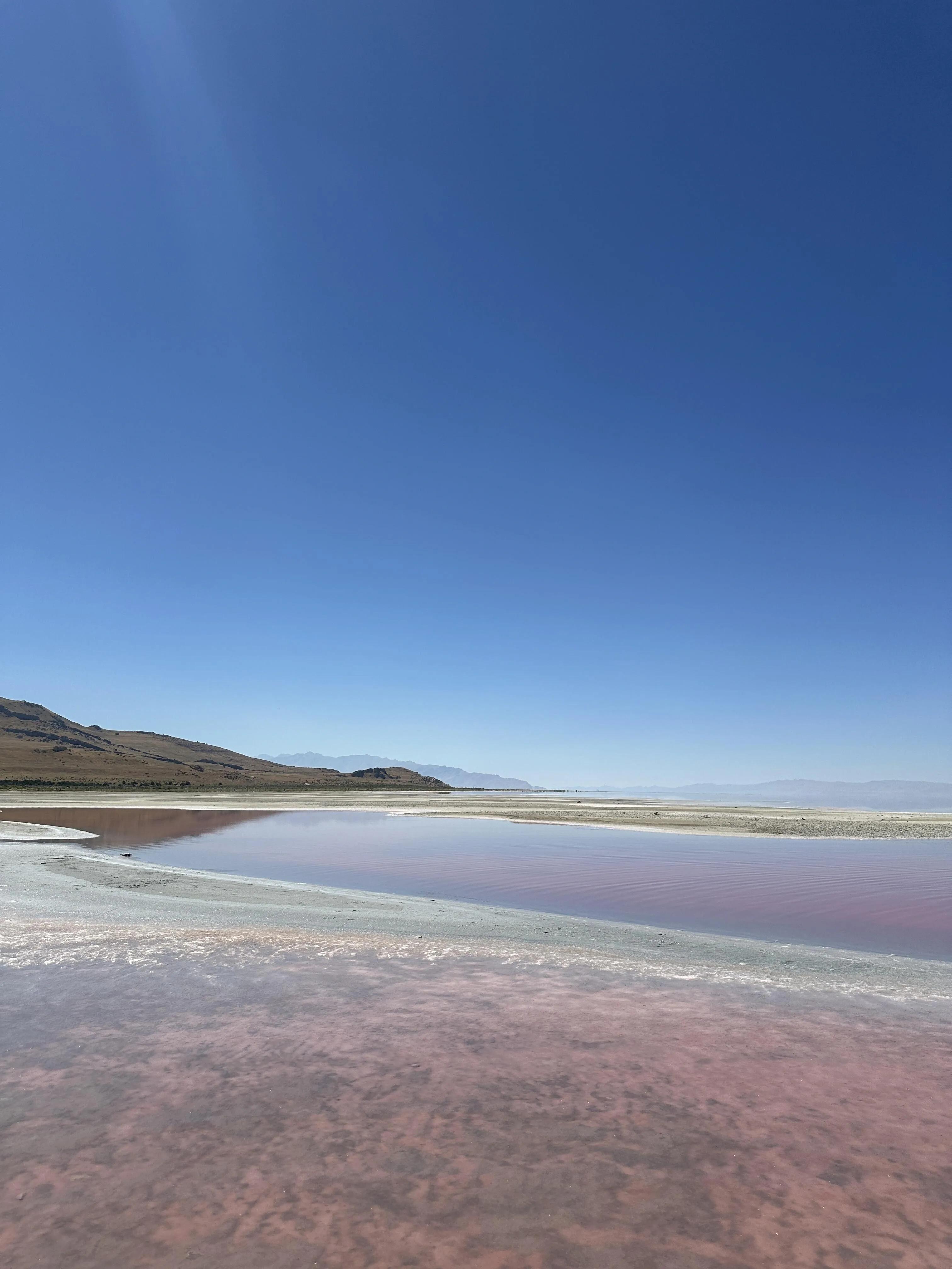 Stansbury Bay:这里的粉湖美名远扬 ,实地所见更胜照片。湖水呈现明显的粉红色,景色迷人。需要注意的是,湖边小飞虫较多。前往时请导航至Stansbury Viewpoint,途中需要行驶约20分钟的石子路。沿途还能看到大小不一的盐滩,可作为Bonneville Salt Flats的替代选择。