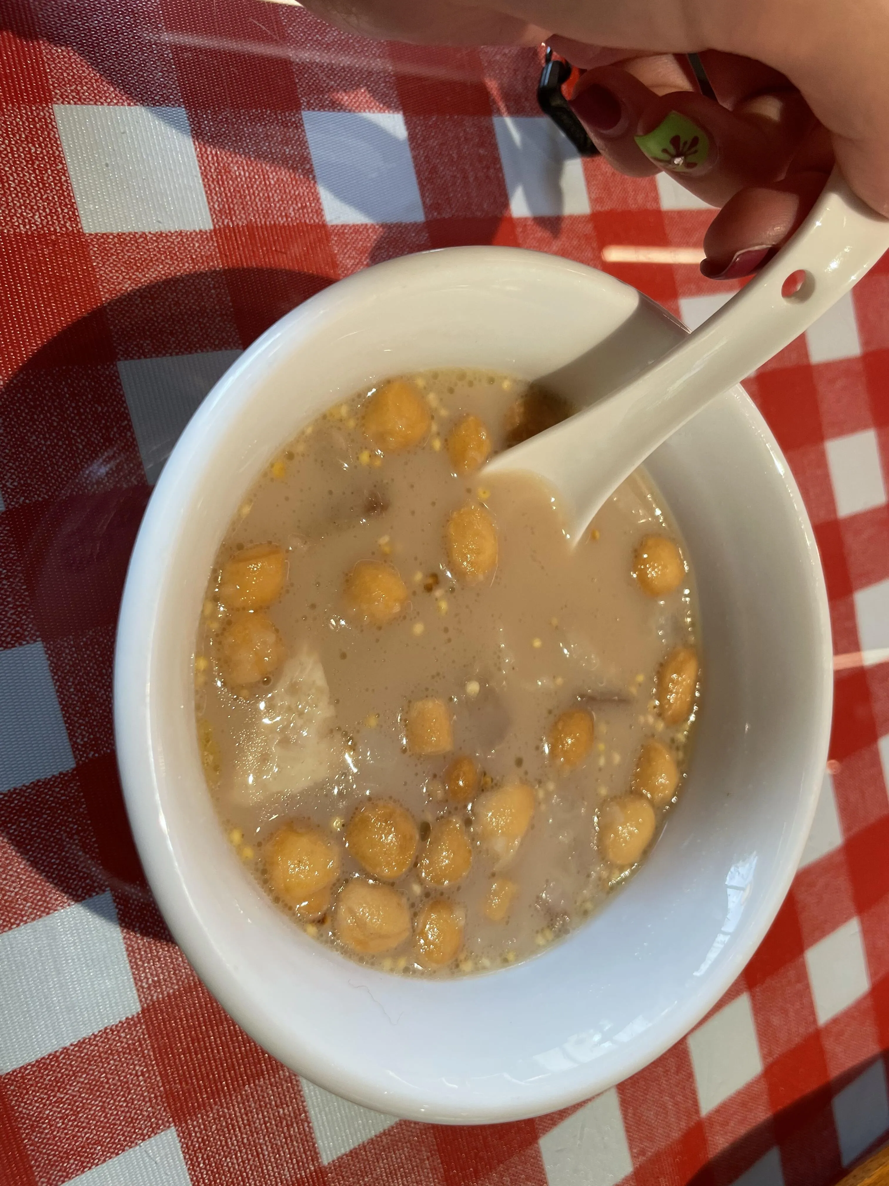锅茶在托亚早茶尝试的,是奶茶加上奶皮子、红枣、肉和果子丁,可惜这家店的味道不够浓郁。