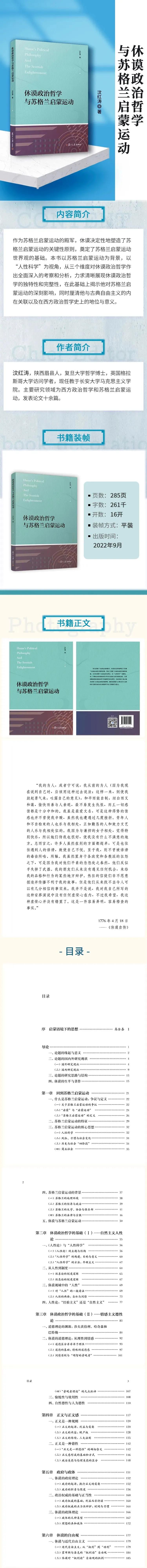 休谟的思想是个重大话题,而苏格兰启蒙思想更是一座金矿,中西思想界对此的研究和挖掘远未穷尽,希望红涛今后继续深耕,假以时日,为中国的西方哲学史界贡献更多优秀的研究成果。