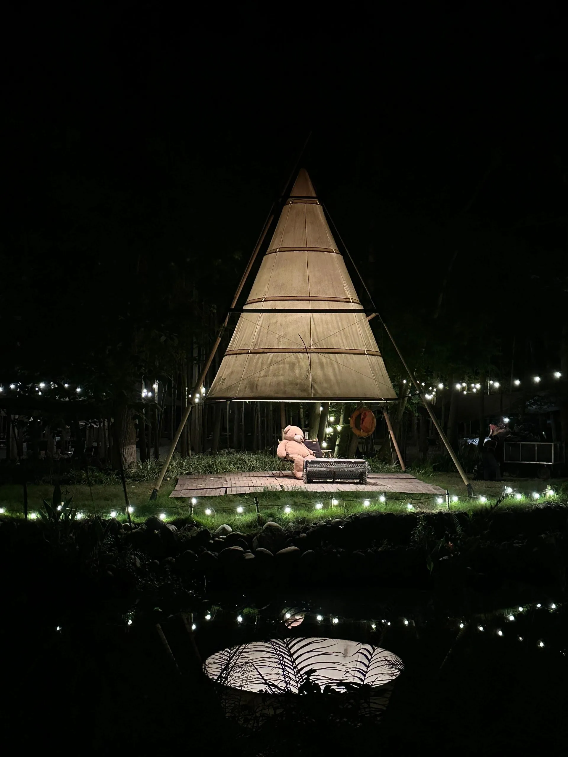 娱乐方面,营地提供了丰富的活动。 小船可以免费使用,只需交押金领取船桨 。吊床也是免费的。现场还有人演奏音乐,喜欢唱歌的游客可以即兴表演。 夜晚有坝坝电影放映 ,天黑后还会发放烟花棒,营造出欢乐的节日氛围。