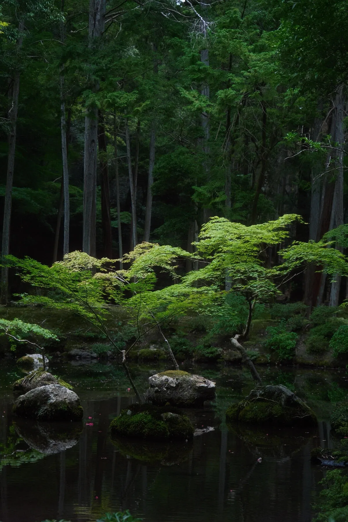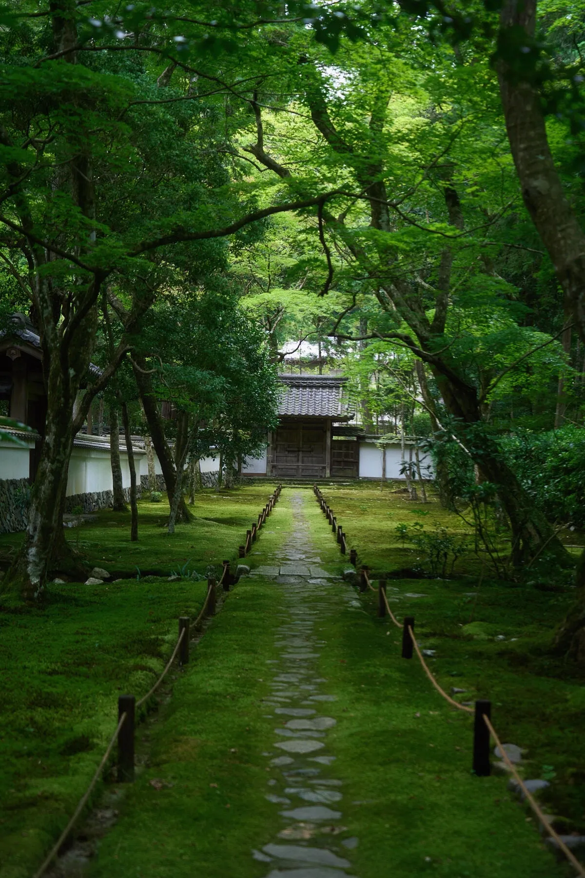 作为世界文化遗产, 西芳寺的庭园分为上下两段 。上段是枯山水式园林,下段则是池泉回游式庭园。尽管建成已久,庭园内的绿意层次仍然令人惊叹。苔藓如同绒布般覆盖着大地,细流悄然流过,仿佛连青苔也随之泛起涟漪。游客沿着步道缓步而行,每一步都是一幅新的景致,四季皆美,一天之内景色也各不相同。