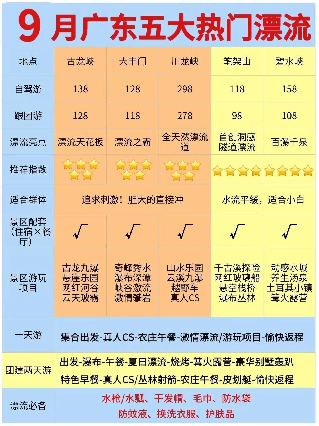 夏日漂流季即将结束,各大漂流景点将于九月底至十月初停漂。在这个季节的尾声,不妨前往以下几个地方体验刺激的漂流,感受浪尖上的过山车般的快感,尖叫声中释放压力。