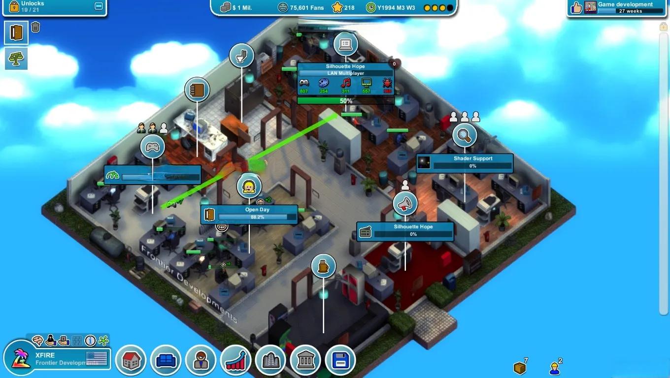 这款游戏不仅让玩家体验到游戏开发的乐趣,还模拟了游戏行业的各个方面。玩家需要研究市场需求,制定营销策略,参加游戏展会,甚至可以开发自己的游戏引擎或主机。这种全方位的模拟让玩家能够深入了解游戏产业的运作机制。