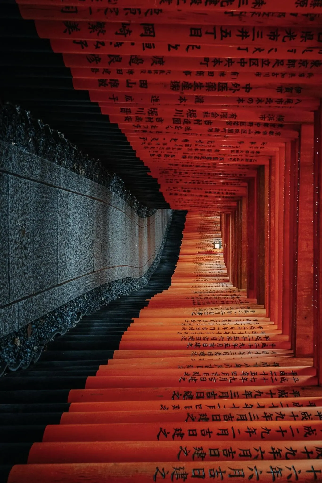 伏见稻荷大社是日本稻荷神社的总本社,以其千本鸟居闻名。这些鸟居始于江户时代的捐赠习俗,最早可追溯至明治年间,如今已成为伏见稻荷大社的标志性景观。