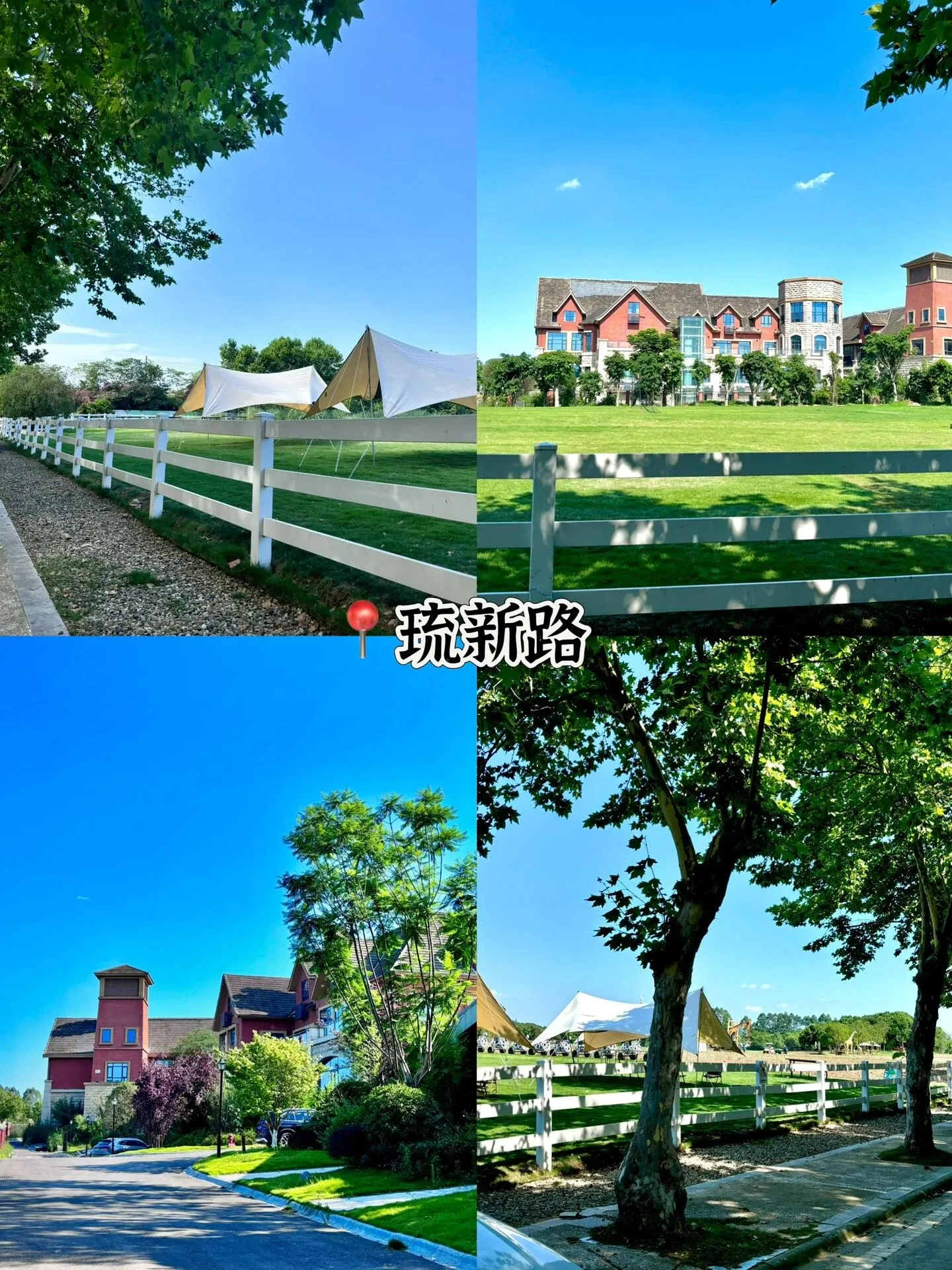 琉新路:可以直接开车到马路边,导航搜“天际线露营基地”就能到。这里有蓝天白云、木栅栏、梧桐树,给人一种新西兰的即视感。就在路边就能拍出很棒的照片,而且是免费的。