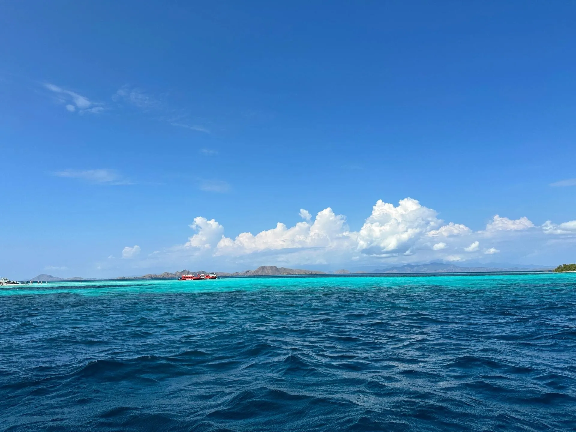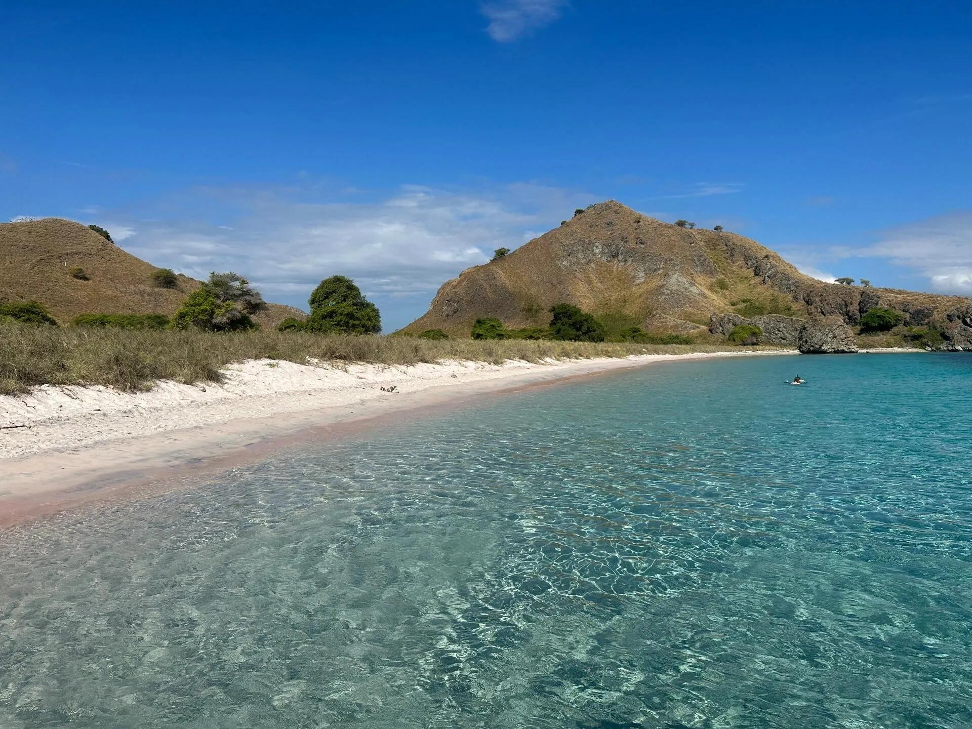 粉色沙滩:肉眼可见的粉色沙滩,细腻柔软。阳光透过湛蓝海水折射在粉白海底,宛如天然无边泳池,带来沉浸式游泳体验。浮潜时,游进约10米处海水温度骤降,可见明显分界线,欣赏五彩斑斓的珊瑚和丰富鱼类。注意安全,留意周边游客和船只。停留约40分钟,珍惜时间。