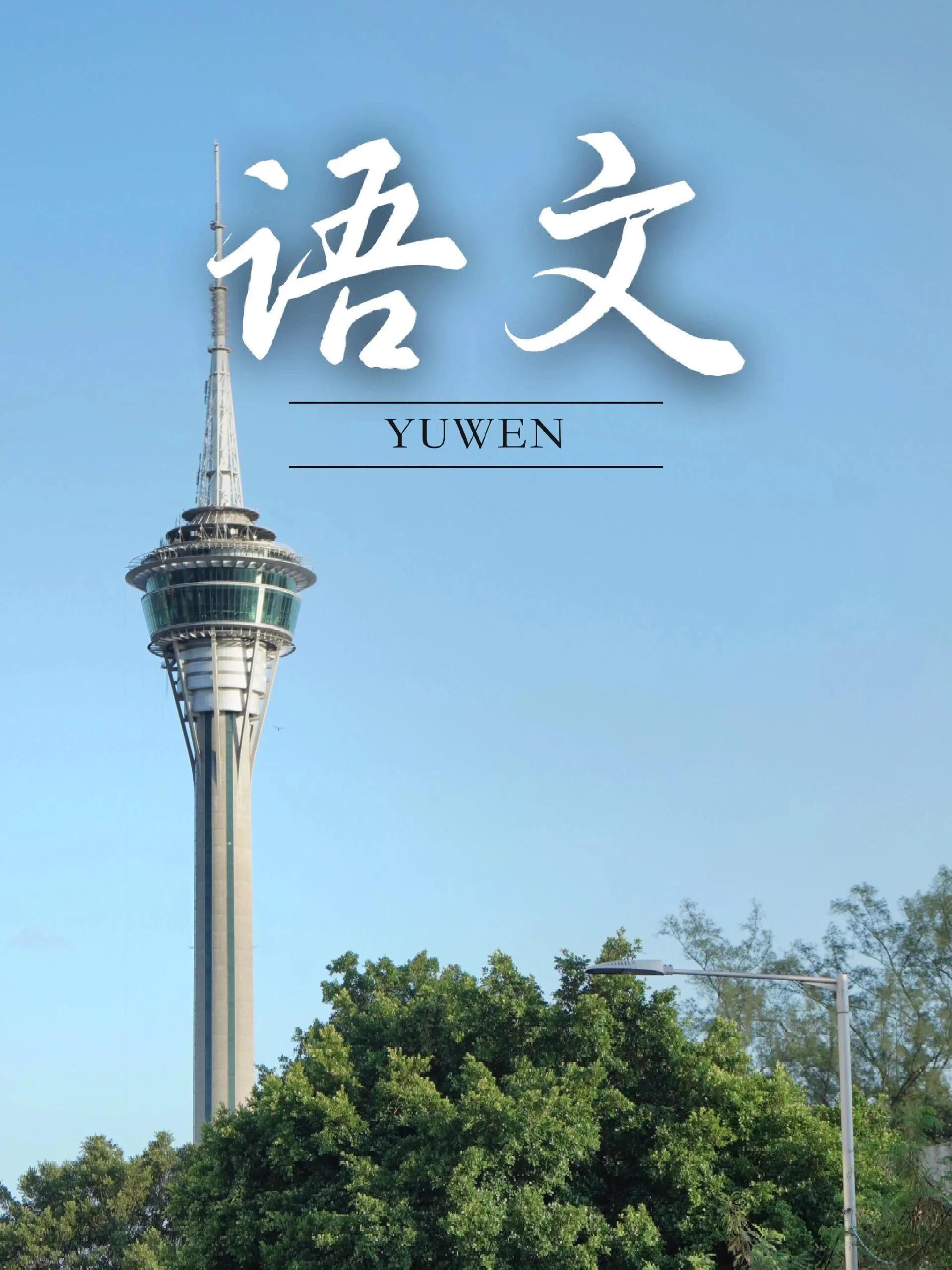 语文课本的封面是高耸入云的澳门塔。 这座338米高的地标建筑不仅能让人将澳门360度的美景尽收眼底,还是世界最高的蹦极塔,吸引着众多极限运动爱好者前来体验飞翔的自由与刺激。