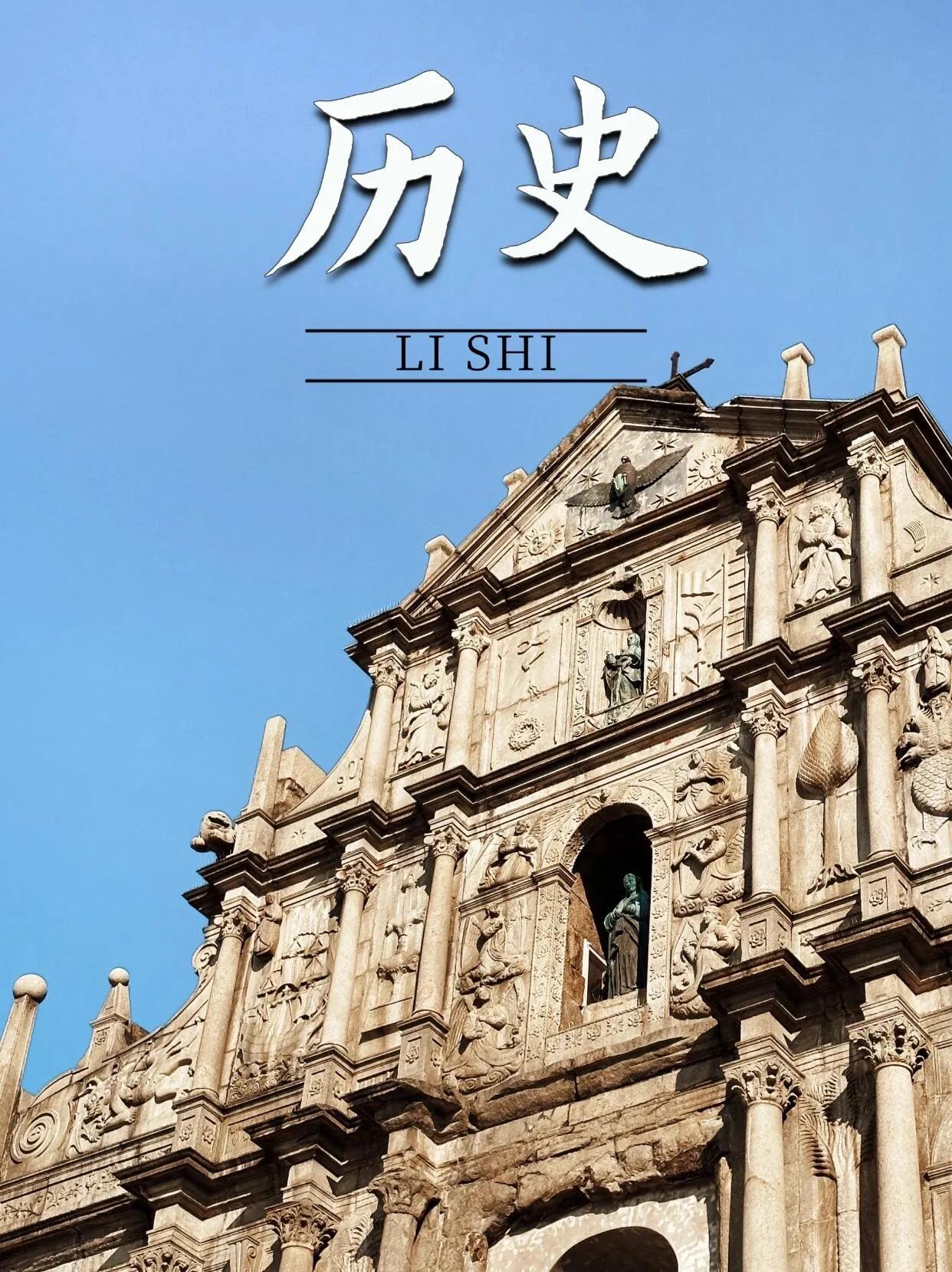 历史课本的封面则是大三巴牌坊。 始建于1602年的大三巴牌坊融合了东西方艺术精华,布满石刻图案与青铜雕像。站在牌坊下仰望,不仅能感受到它的巍峨壮观,还能领略到澳门深厚的历史底蕴。