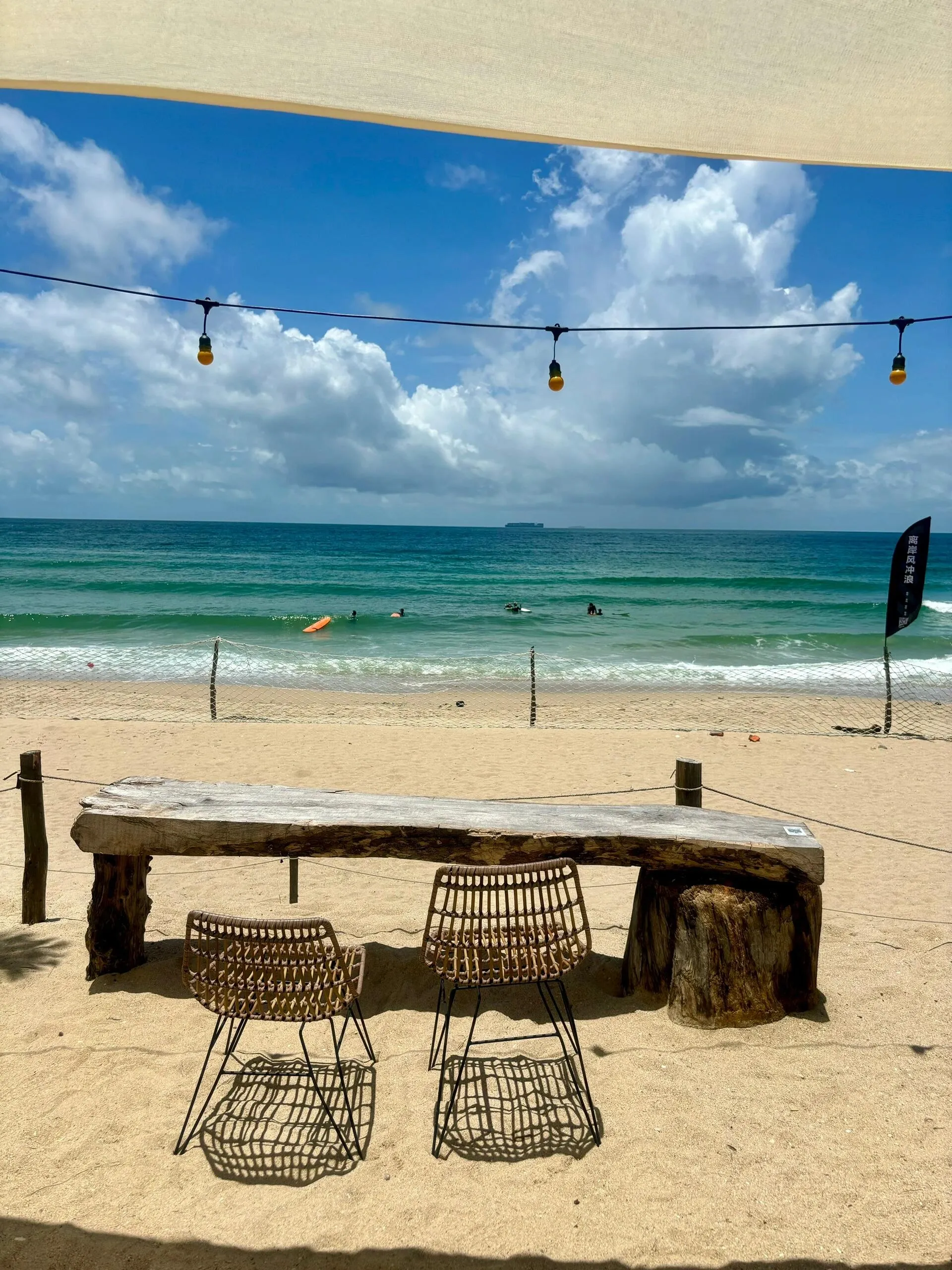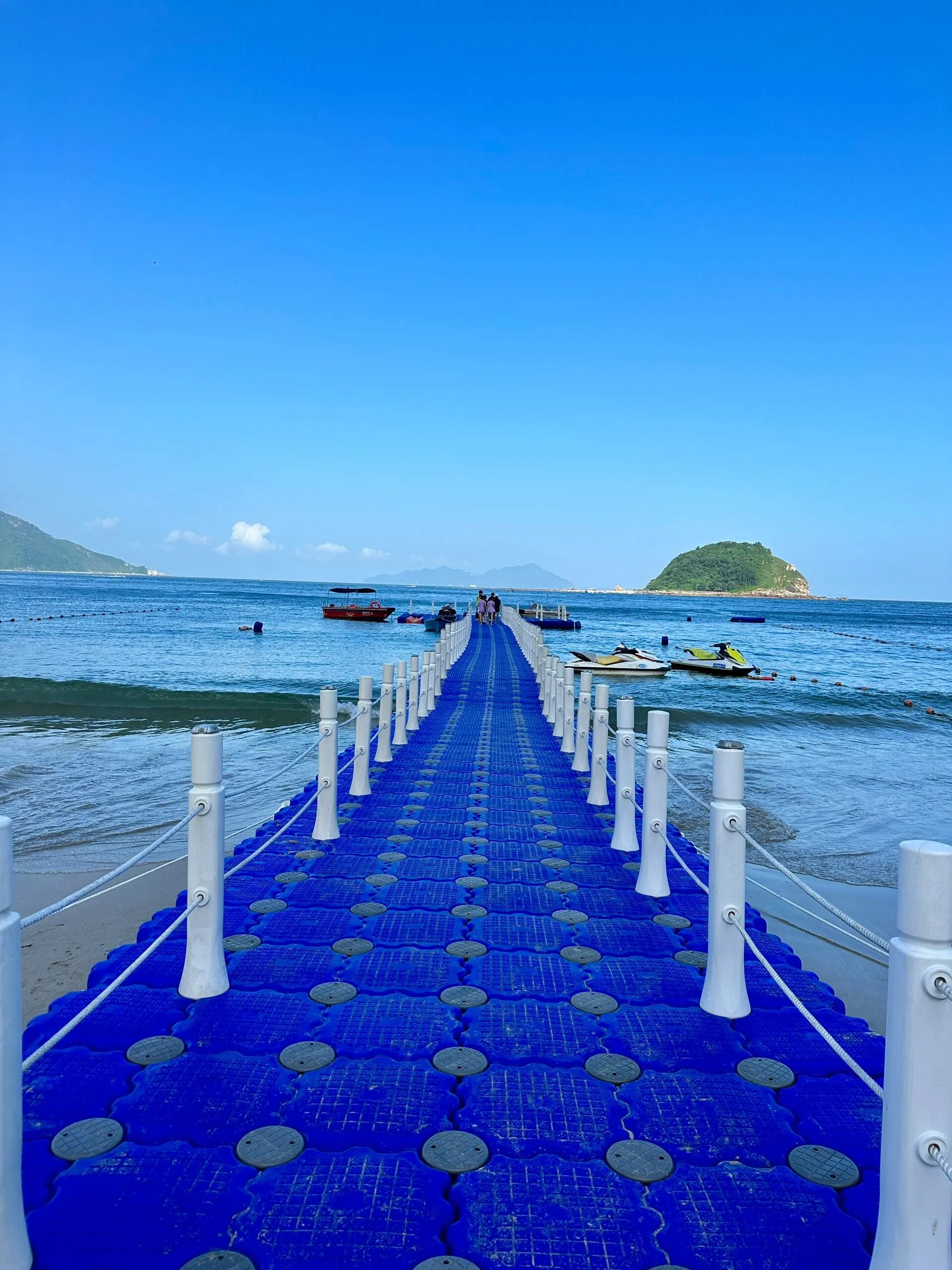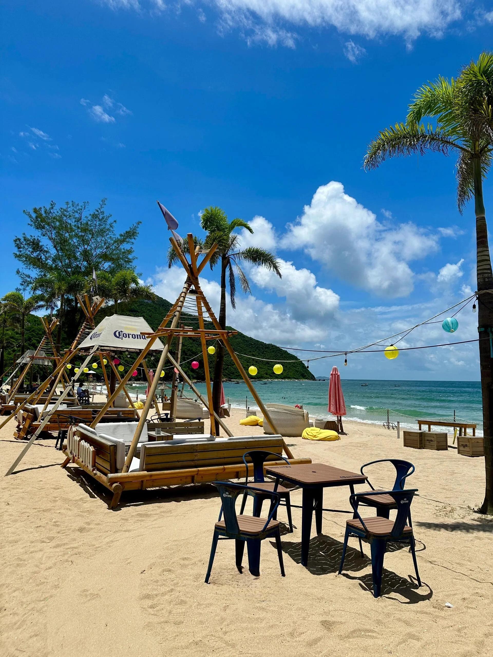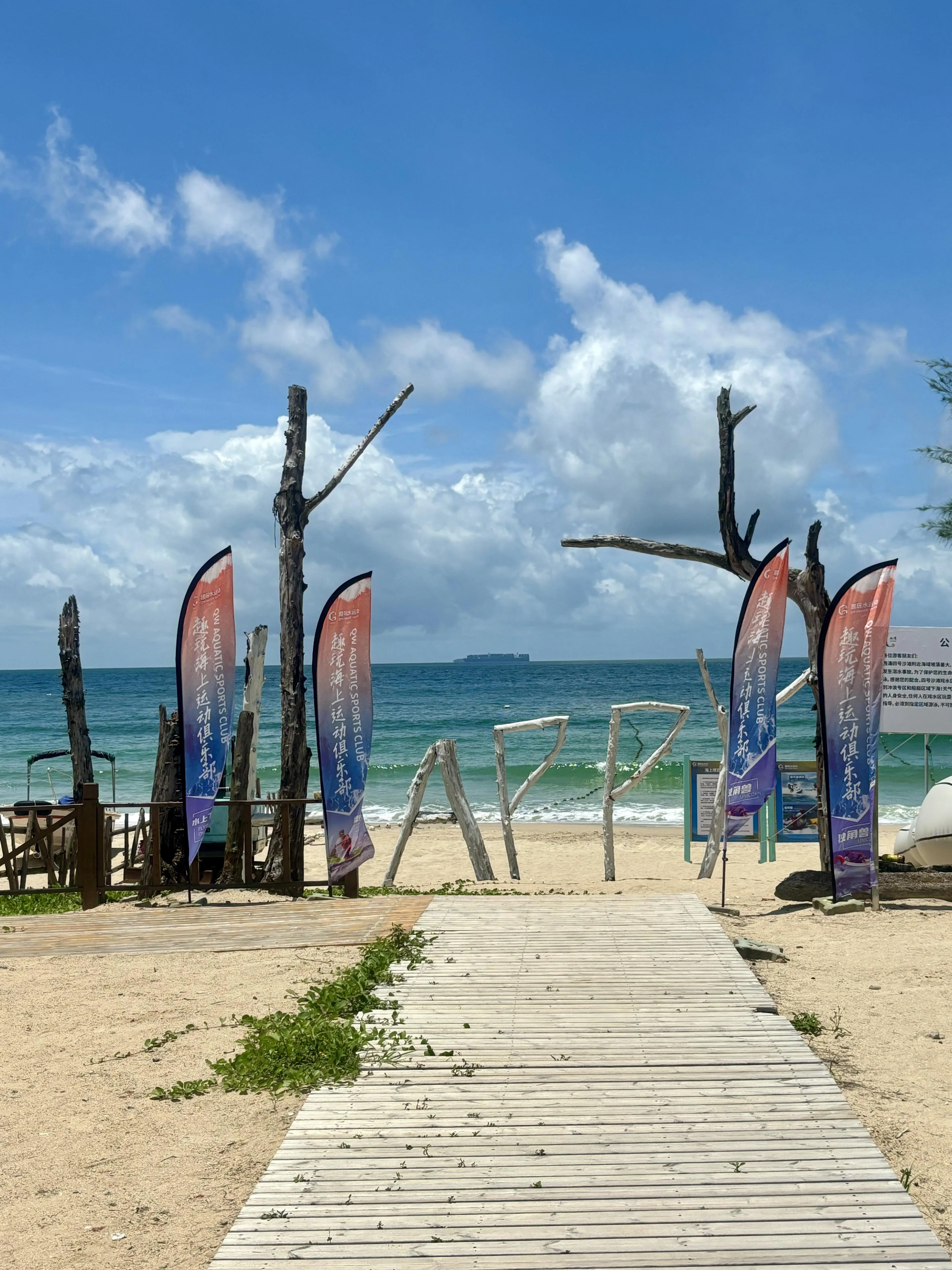 4号沙滩(开放时间8:30-24:00)设有酒吧、冲浪基地和露营基地 。这里有各种水上游玩项目,如冲浪板、摩托艇、观光艇等。此外,这里还有多个拍照打卡点,非常适合喜欢拍照的游客。建议选择一个大晴天来4号沙滩拍照,随便拍都很出片。