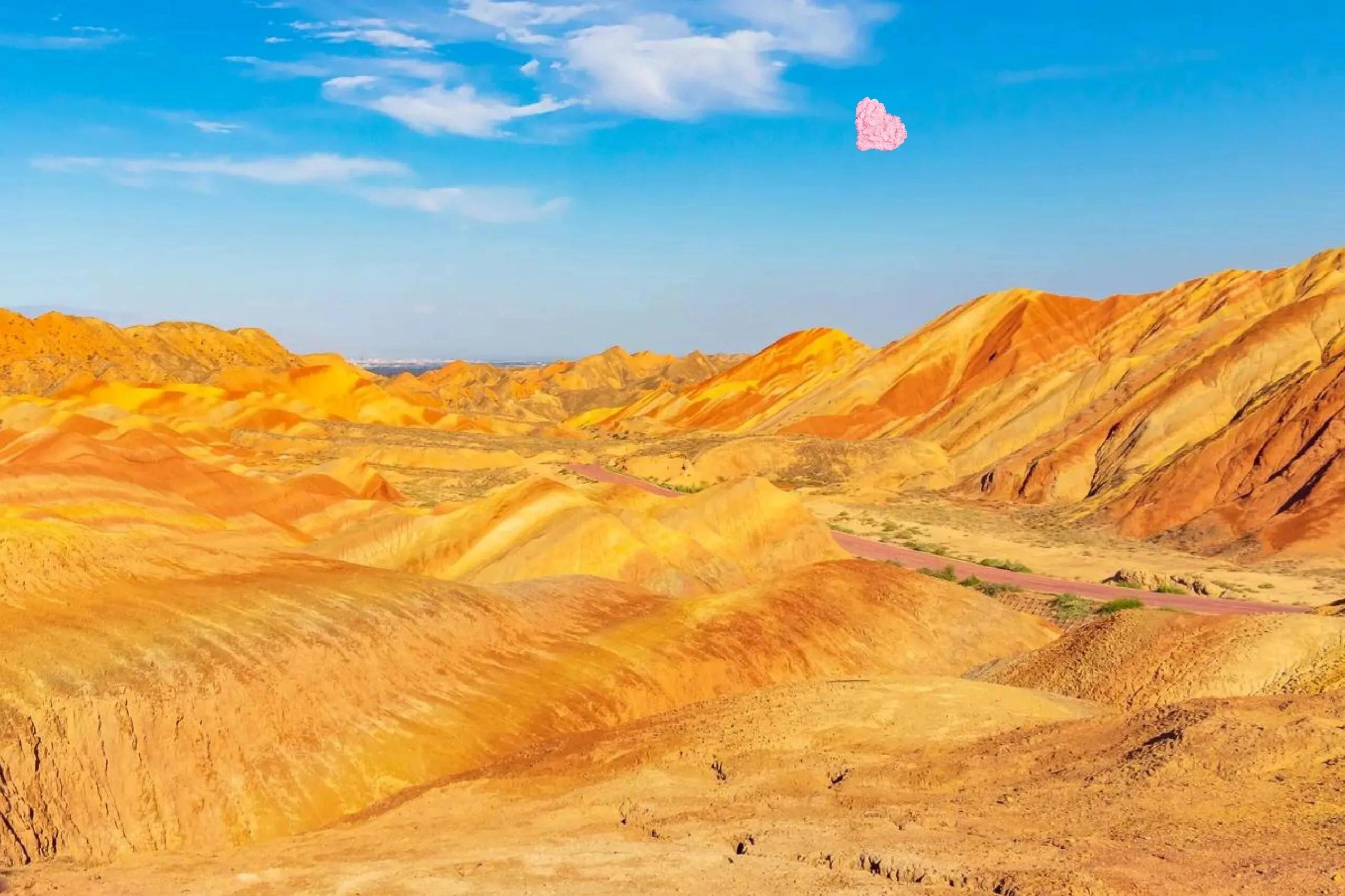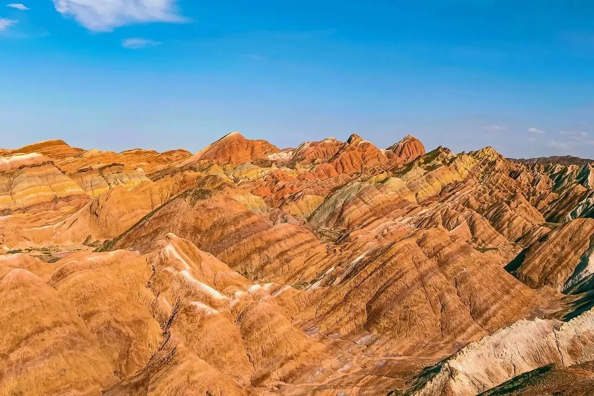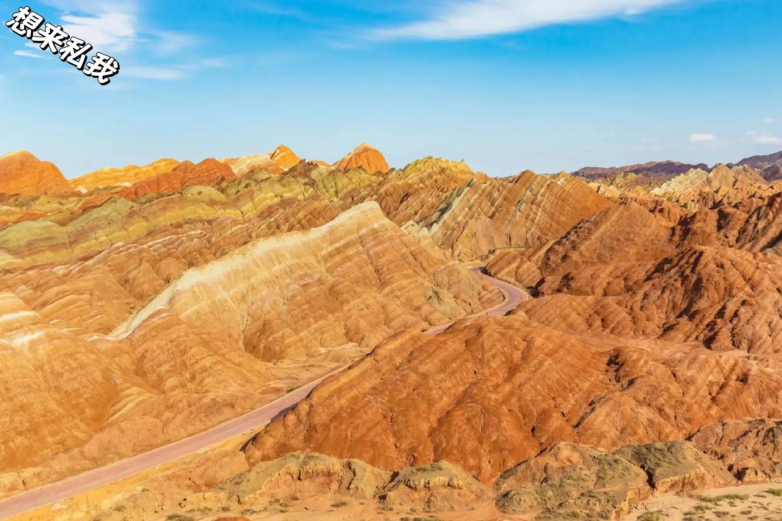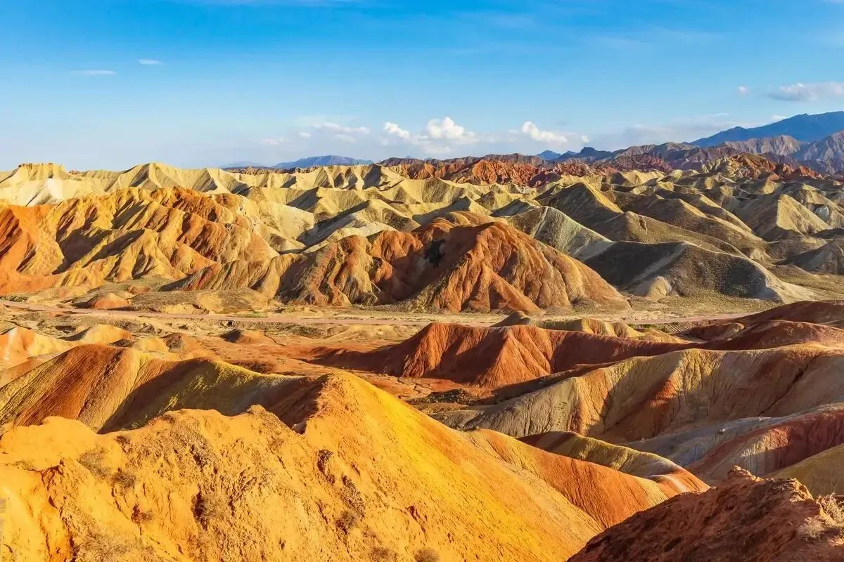 行驶约十余公里后,抵达杏花村水墨丹霞景区。这里的景色一改先前的单调,呈现出令人惊叹的多彩画卷。连绵起伏的山脉披上了红、黄、橙、绿、褐、白、灰等多种色彩,层次分明,相互叠加。