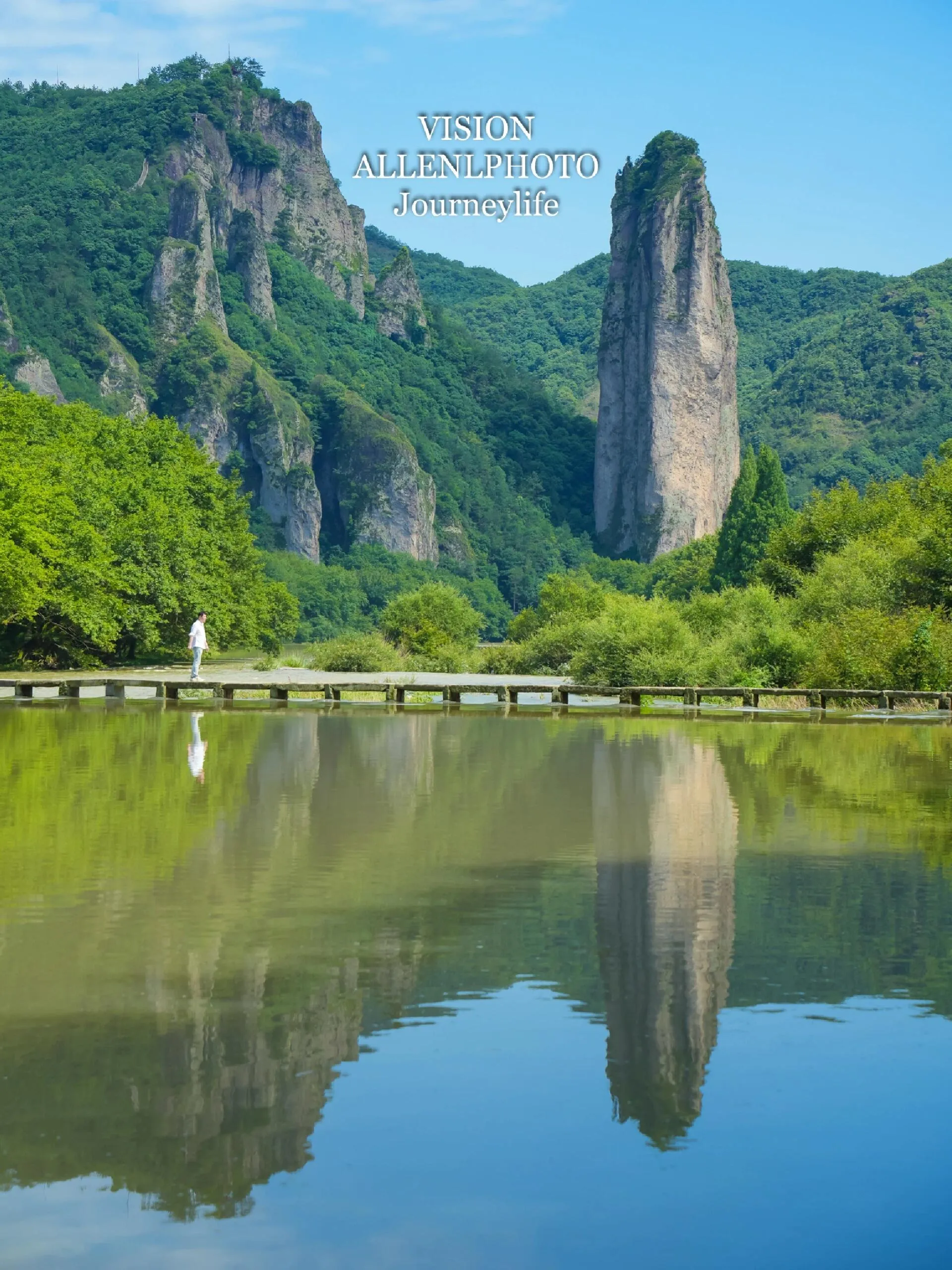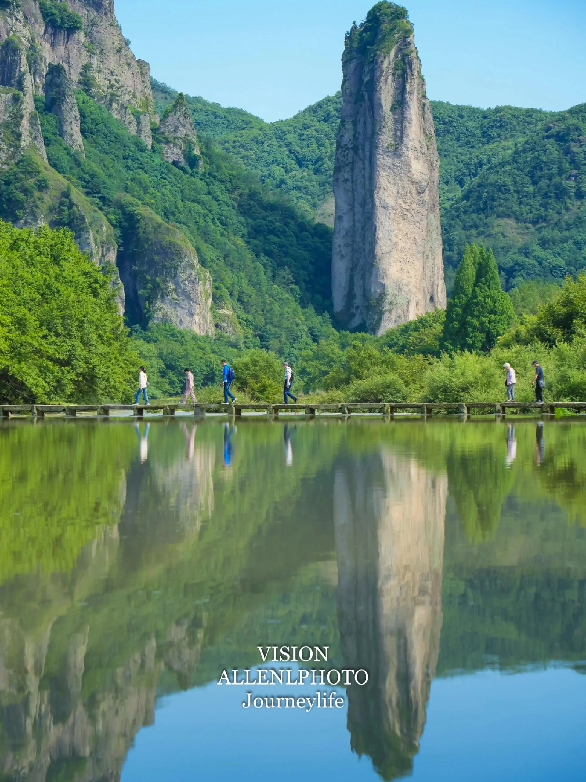 朱潭山:这里有著名的板堰矴步桥,是拍摄仙都最美风景的绝佳位置。沿仙堤向望峰亭方向行走,在河边回头即可拍出充满中式韵味的山水画卷。周末还可欣赏景区组织的老农牧牛表演。