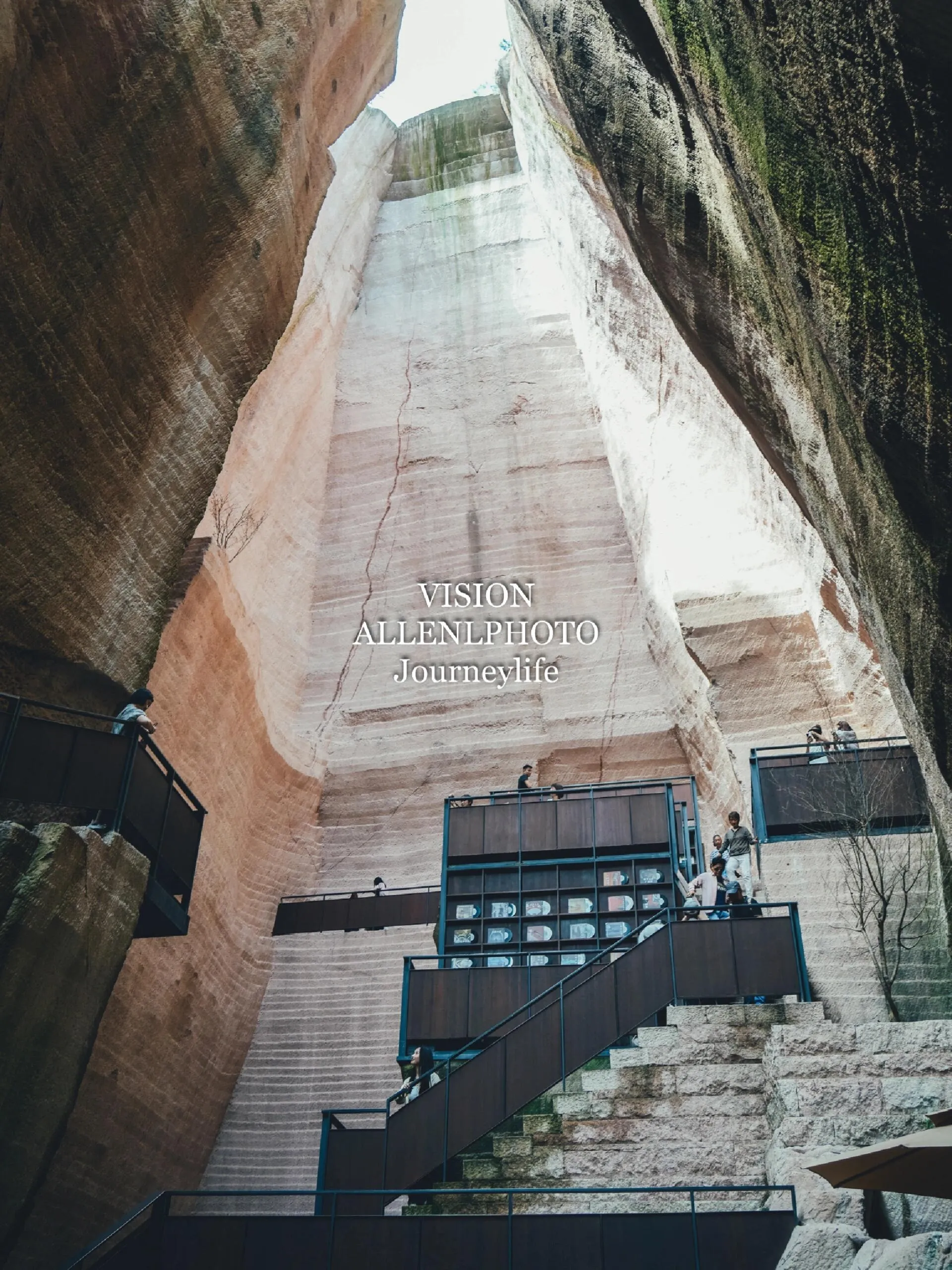 岩宕书房:建在废弃矿坑中的网红景点。从倪翁洞站步行约10分钟可达。游览路线:入口→10号展演厅→9号剧场→8号书房。书房内可登台阶,景观栈道为单行线。建议上午前往,光线更佳。