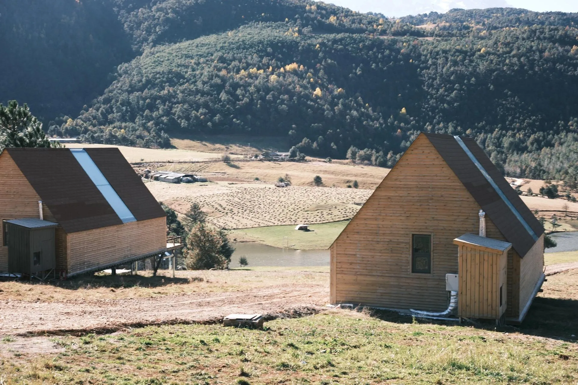 住宿是分布在小山丘的独立小木屋,目前只有5个(3间双人房三角屋顶木屋+2间家庭套房72平米全景落地窗木屋)。房间十分分散,互不打搅。每个木屋的屋顶都可以开天窗,晚上观星睡觉,早上躺在床上就可以看日照金山,浪漫得不行。