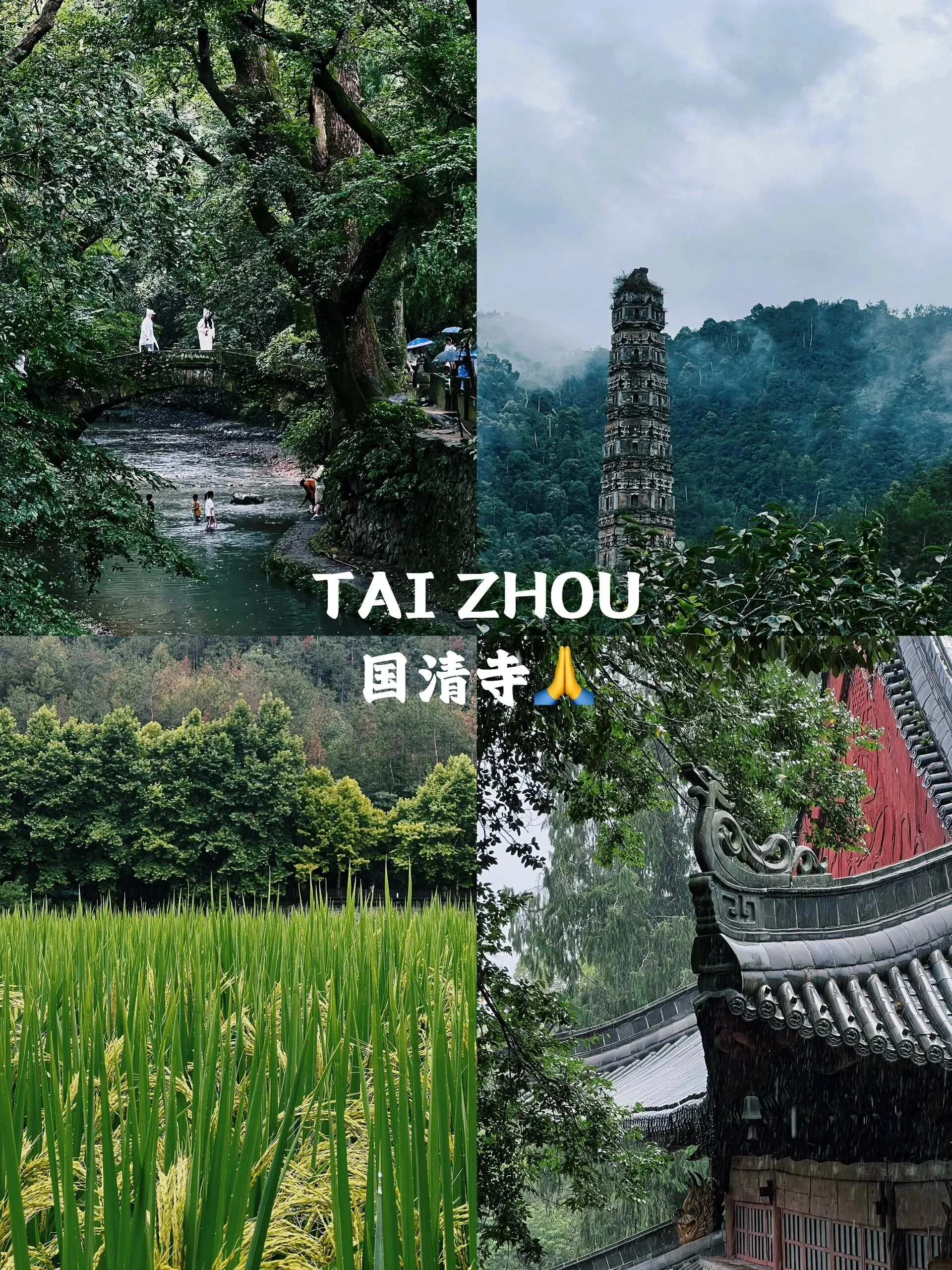 国清寺给人一种世外桃源的穿越感 。清幽、宁静、古朴的氛围让人感到特别治愈。它隐在深山,五峰层叠郁苕绕,双涧回环锁佛寮。特别是雨后的国清寺,更显清幽深邃,云雾缭绕,千年古寺的深蕴仿佛能洗涤心灵。