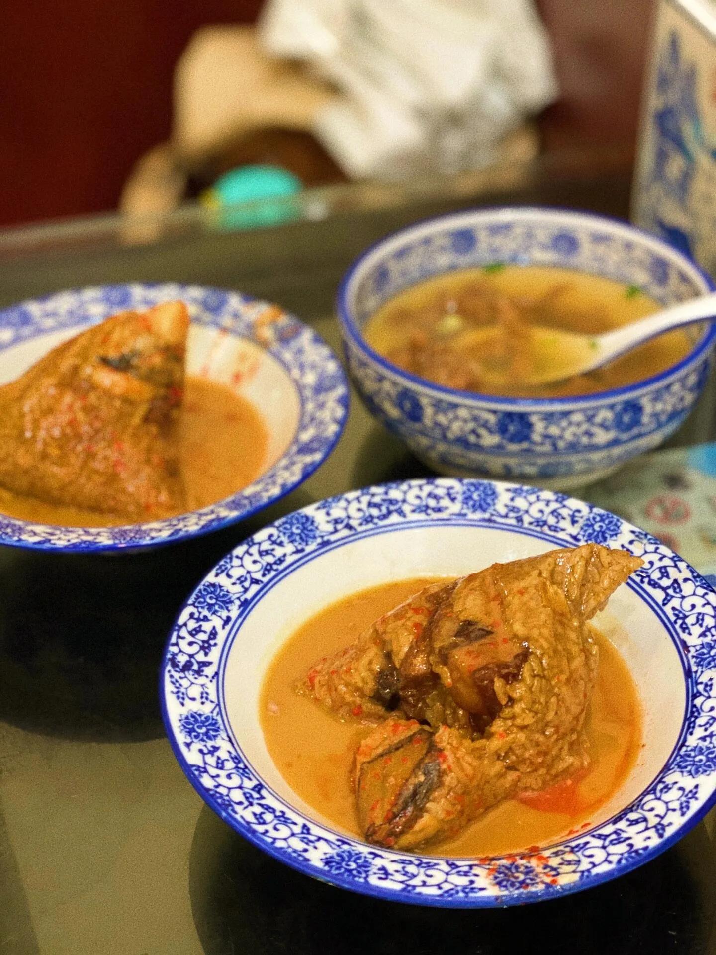 侯阿婆烧肉粽的 招牌干贝烧肉粽值得推荐 。沙茶味的酱汁浓郁,虽然吃多可能会有些腻。牛肉羹则比较普通,可以略过。