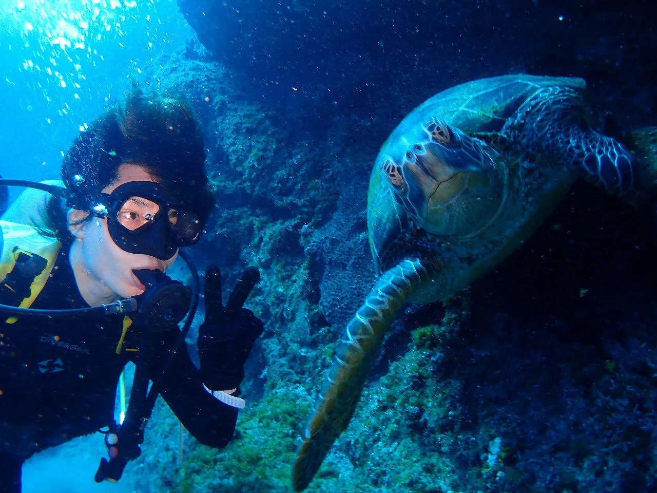 大海:八丈岛真的到处都可以潜水! 海底很清晰有很多很多鱼,而且也很容易可以看到海龟!即使是浮潜也可以看到各种各样五颜六色的鱼。在这里玩了3天也下了三天的海,这里的海下去多少次都会觉得好玩!