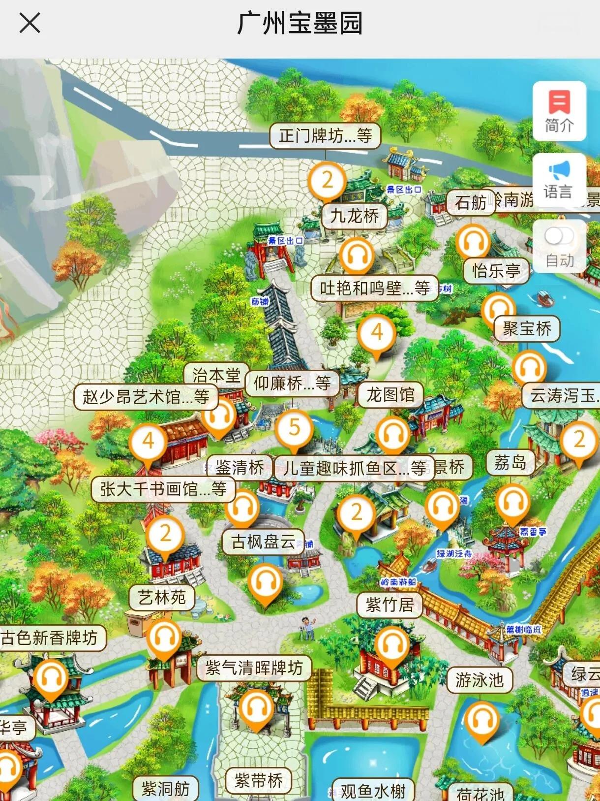 如果想深度游玩,可以使用园内提供的语音导览服务,位于“宝墨园南粤苑”板块下的“语音导览”选项。
