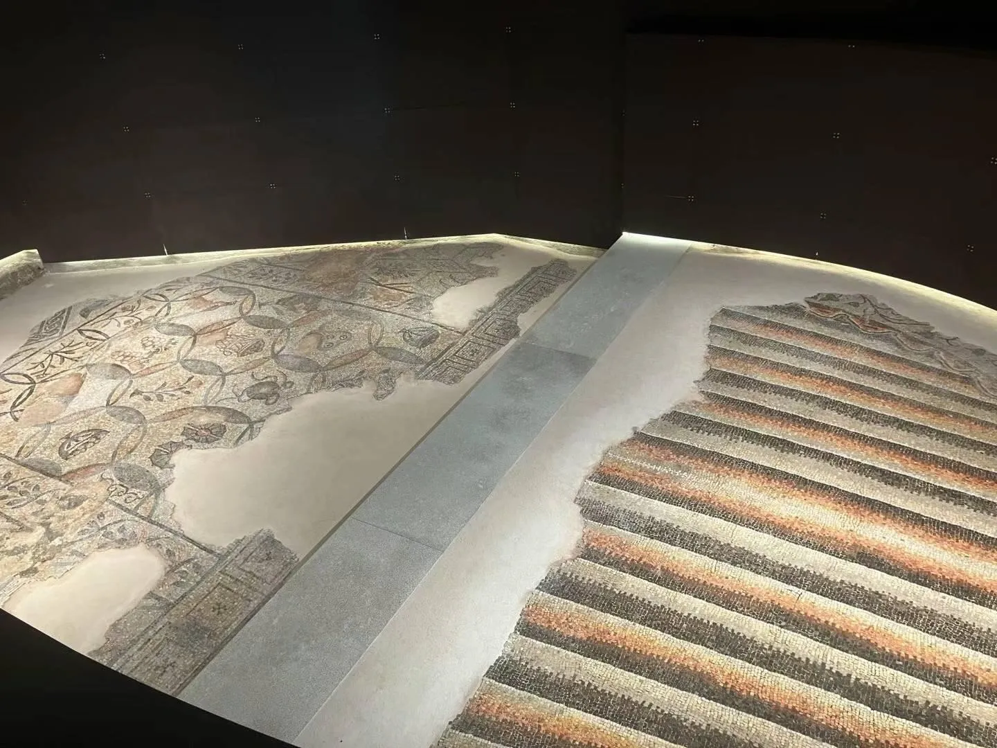 为了保护这些珍贵的马赛克,管理方在上方架设了玻璃通道 。然而,环境湿气附着在玻璃下方,极大地影响了展示效果,这也是古迹保护中常见的两难困境。