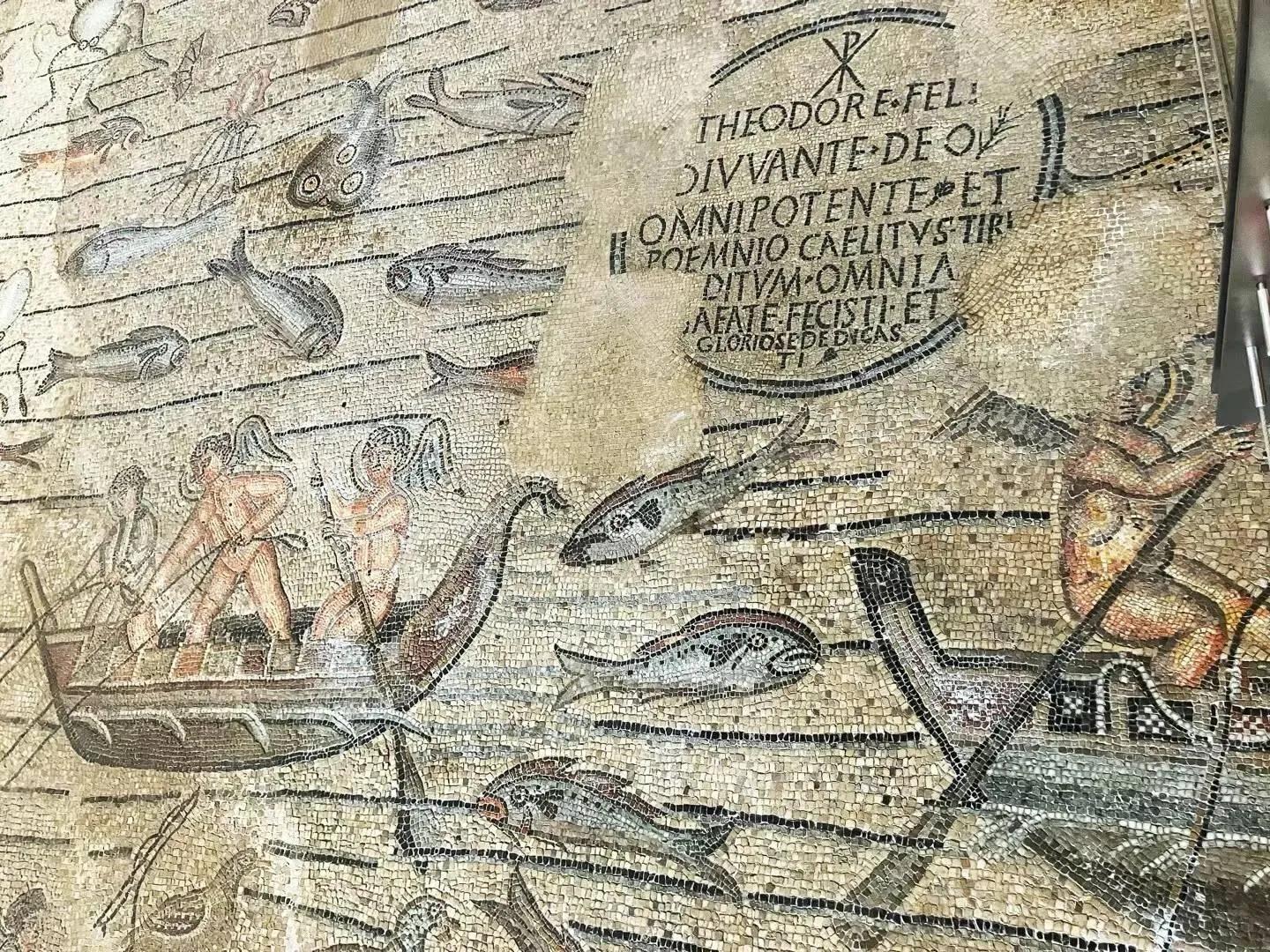 阿奎莱亚大教堂保存了意大利最早的大面积基督教马赛克 ,也是西方世界最大的基督教地板马赛克。 起初在计划行程时,我发现大教堂区域的参观点似乎零散分布 。到达后才明白,原来是因为后续的改建将四世纪君士坦丁时代的原始地板截断,这些马赛克是从不同临近建筑中被发掘出来的。