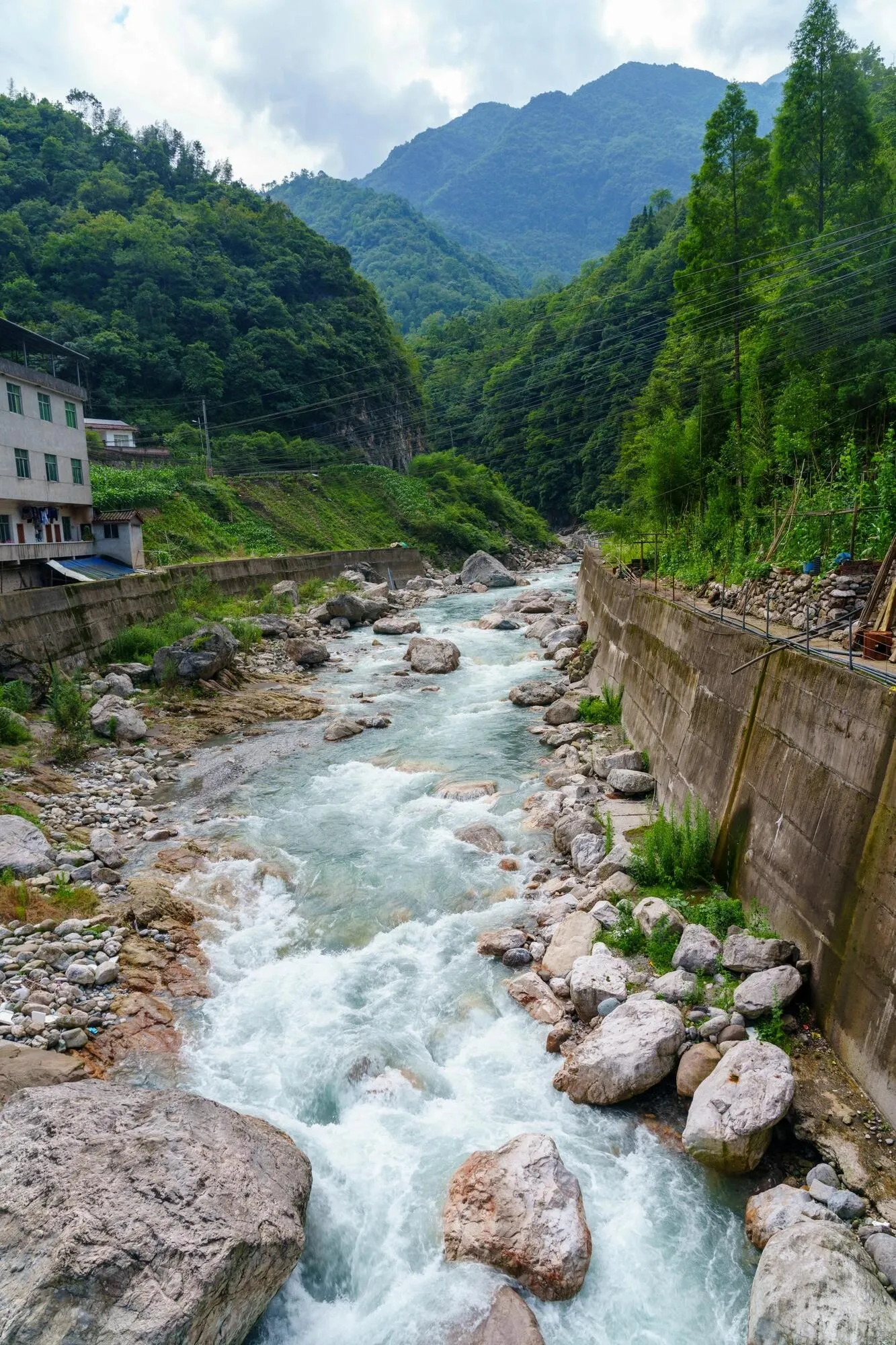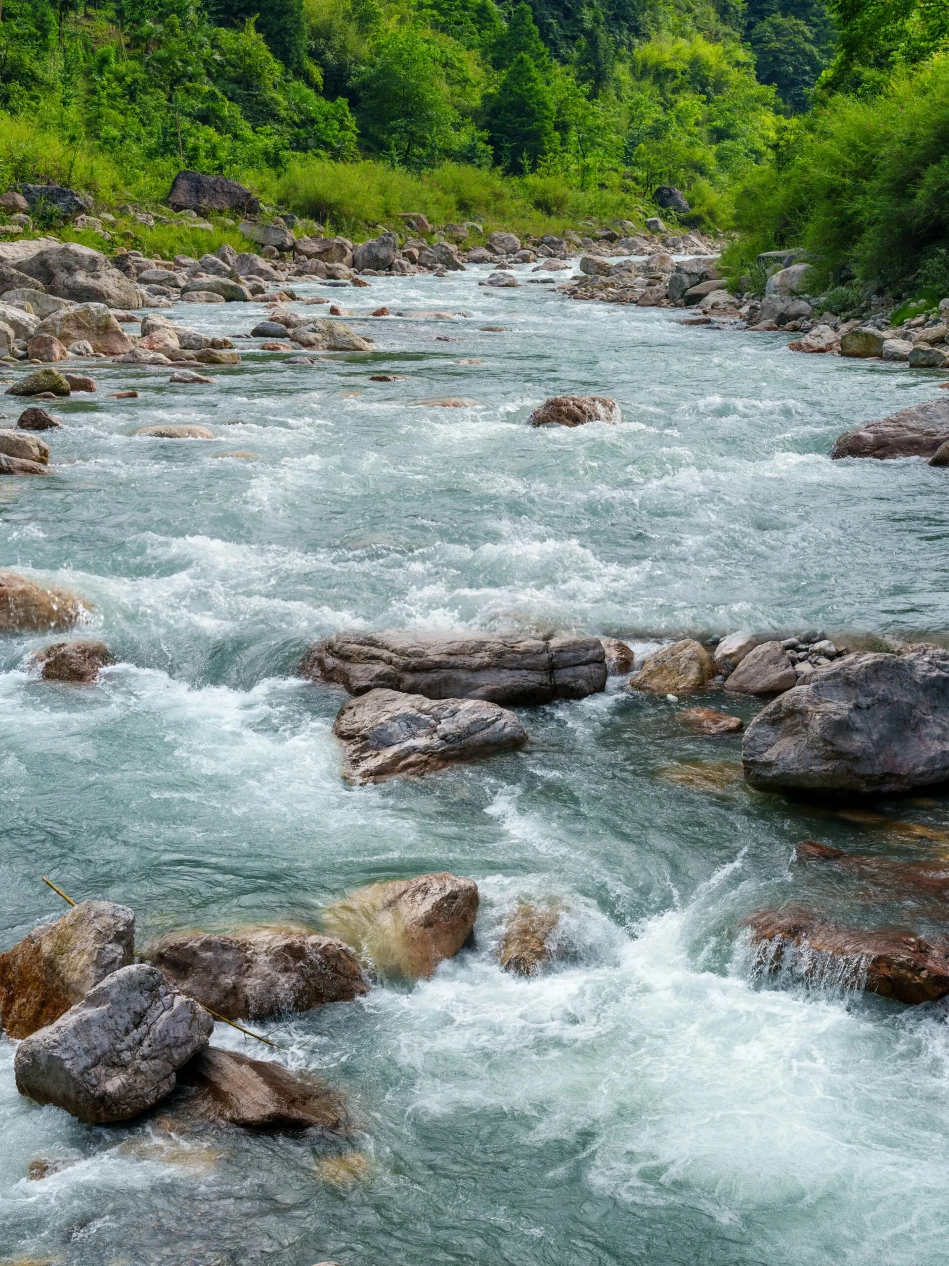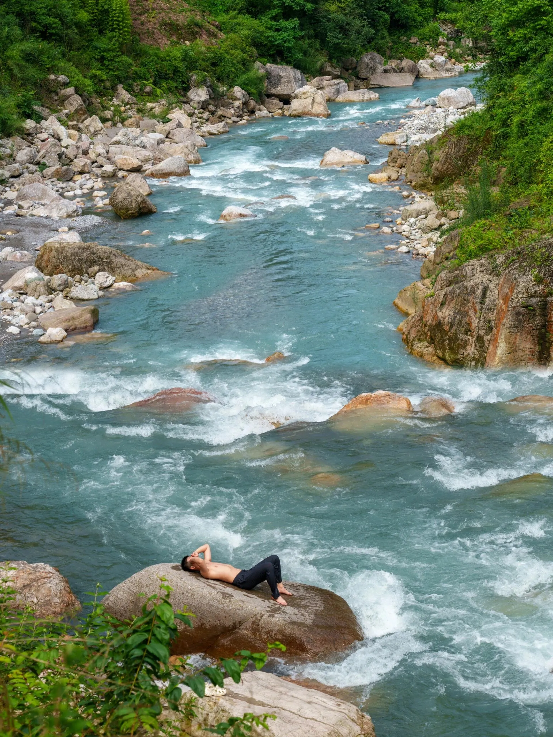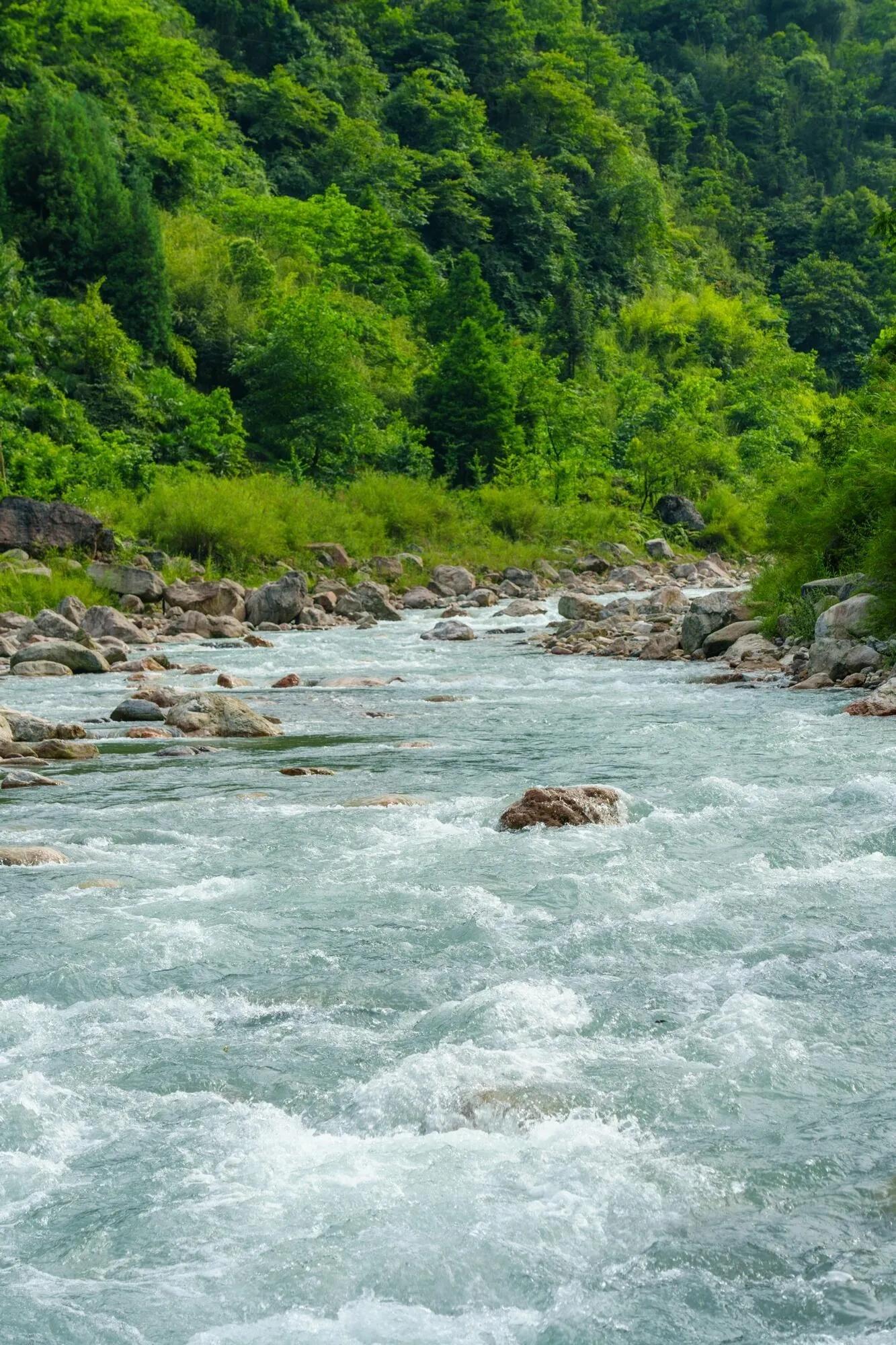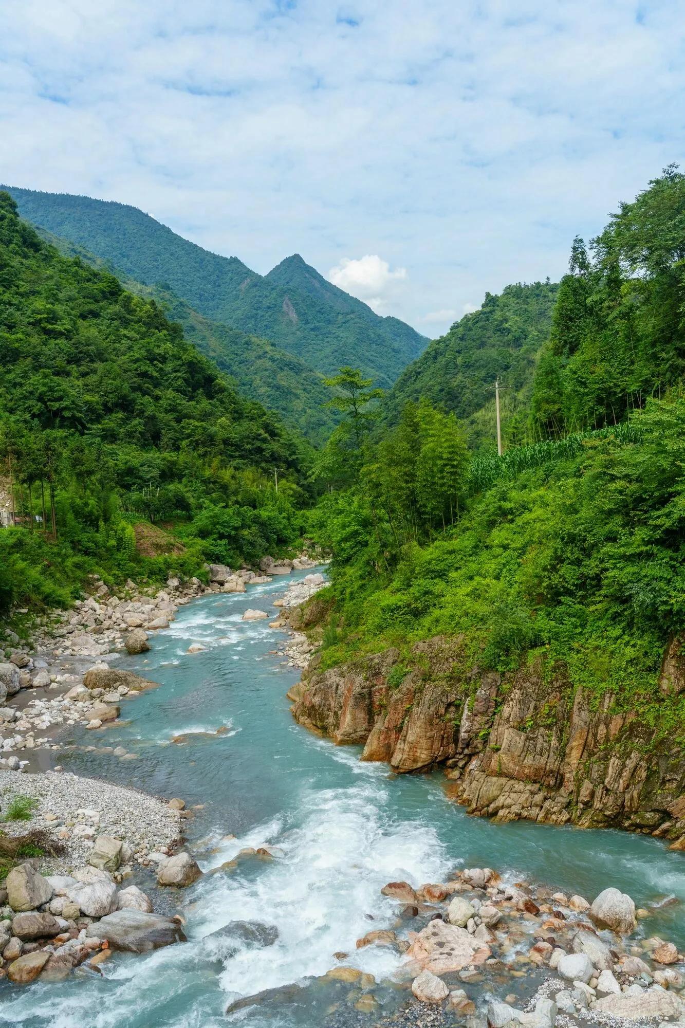 夏天玩水是不可或缺的活动,而成都周边有许多野生景点可供选择。本文推荐一个小众人少的免费耍水地——位于 崇州鸡冠山的河道 。这里的河水清凉,水流较急,河道中遍布石头。两岸青山绿树环绕,自然环境优美,非常 适合夏天避暑耍水和休闲吸氧 。