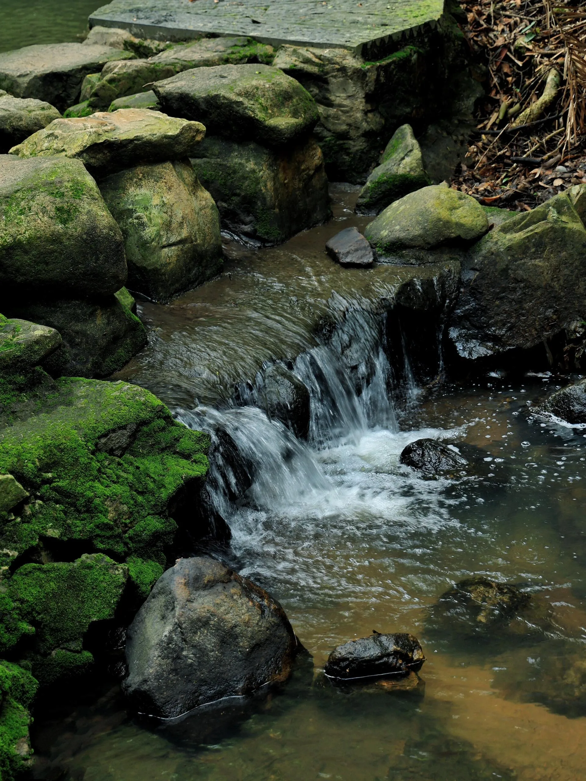 导航到“大岭山森林公园-石洞城楼”,在观音寺左手边可以看到登山入口。进入后直行不到20米会遇到一个分叉路口。右边路线一半是小溪一半是栈道,非常凉爽,还能玩水。左边路线主要是阶梯,有种绿野仙踪的感觉。