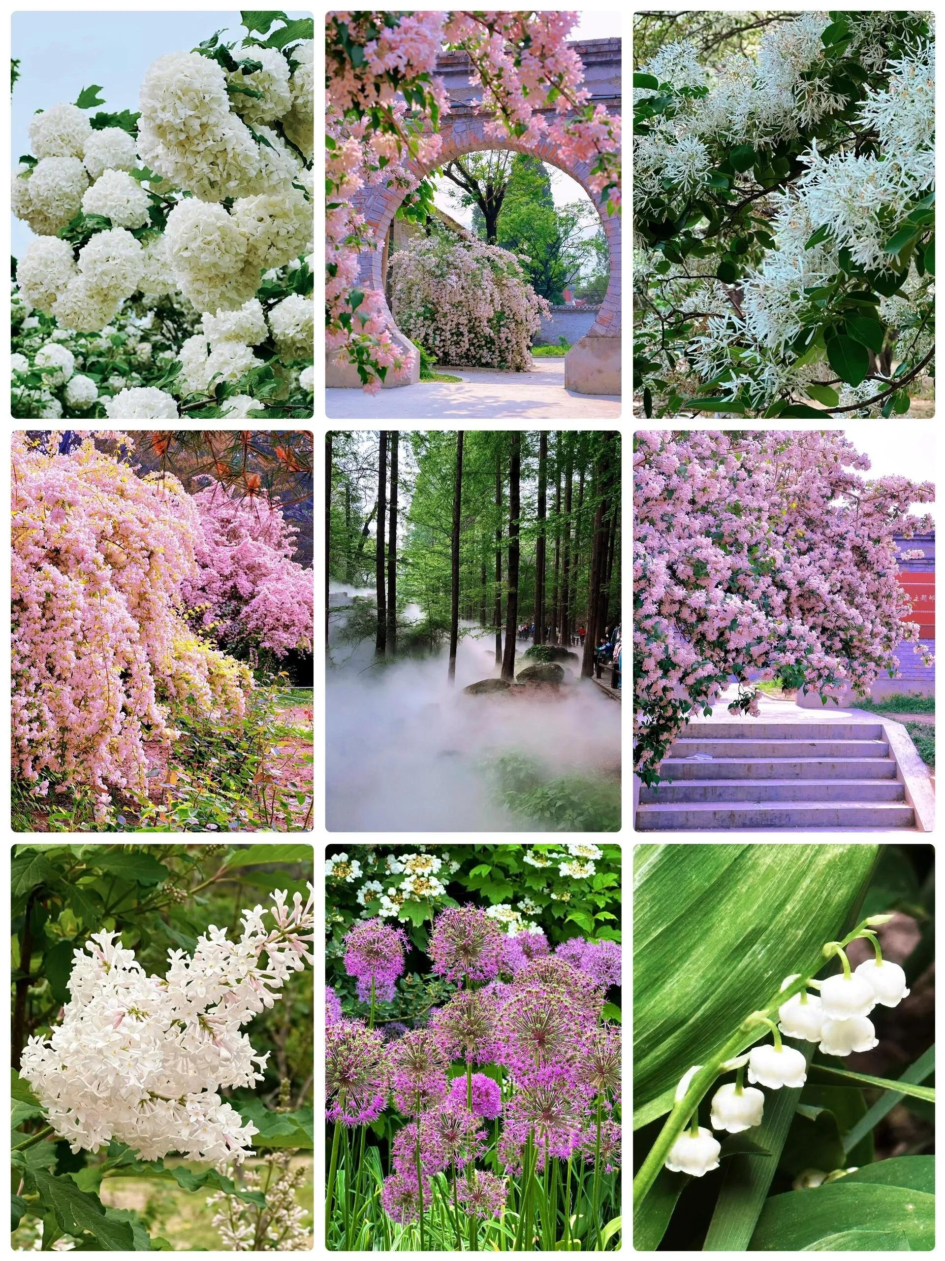 目前盛花期的品种有木绣球、铃兰、牡丹、猬实和鸢尾。而珙桐、鹅掌楸、郁金香和丁香已经进入末花期了。