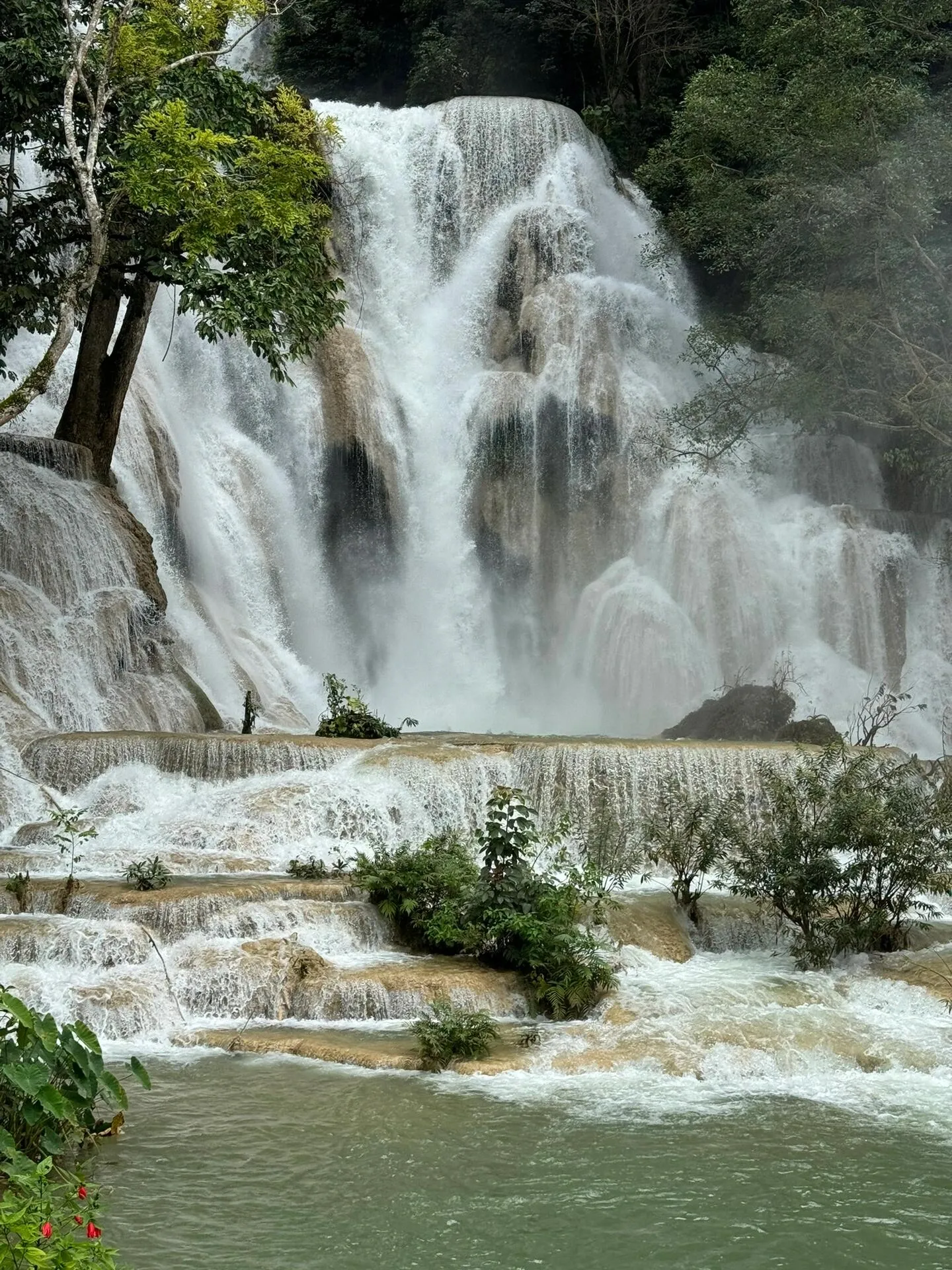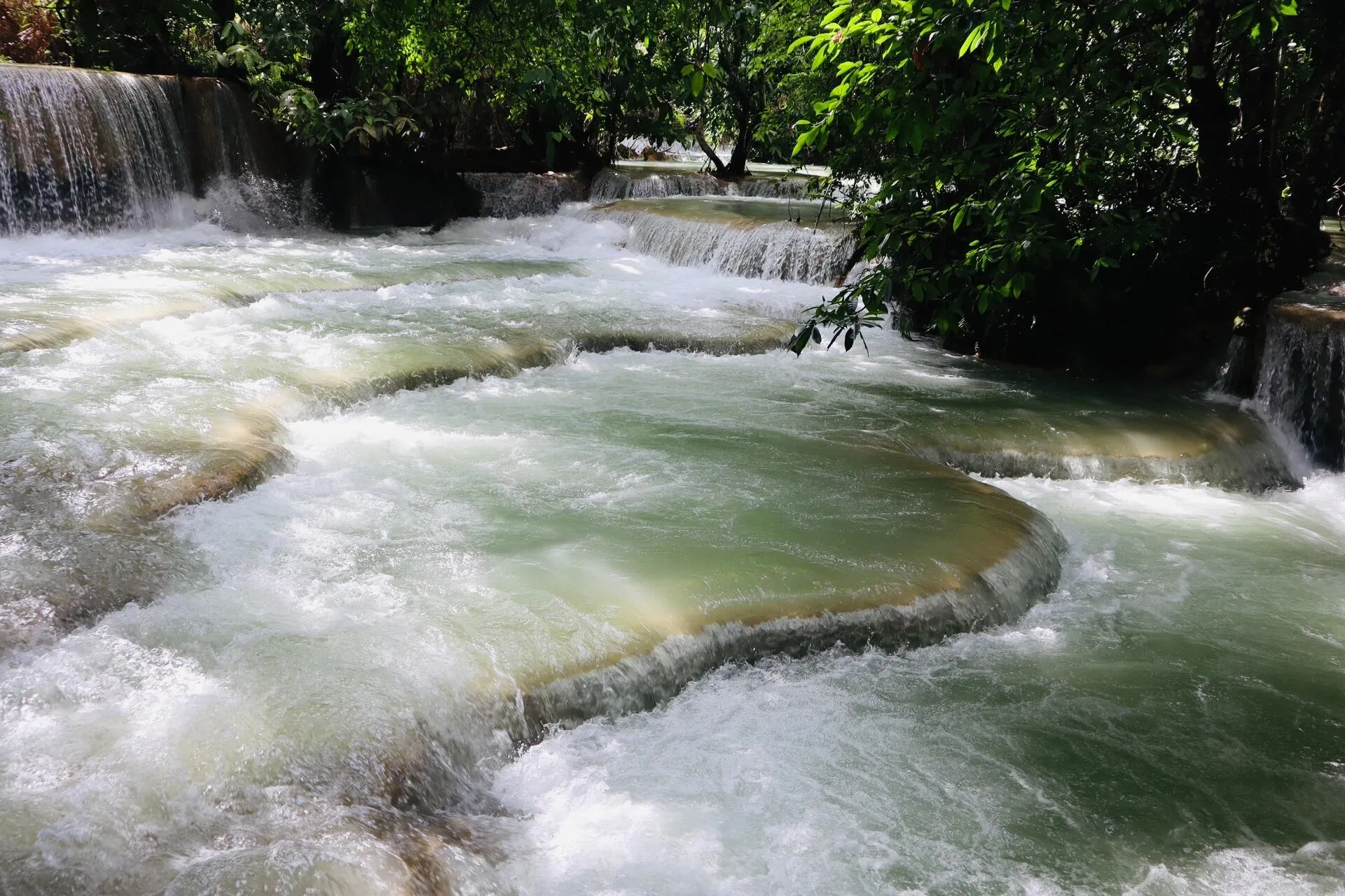 距离琅勃拉邦二三十公里的关西瀑布也值得一游。瀑布分为多段,雨季水流湍急不宜下水,但在水流平缓时,游客可以在瀑布中游泳。因其美景,关西瀑布被誉为“小九寨”。