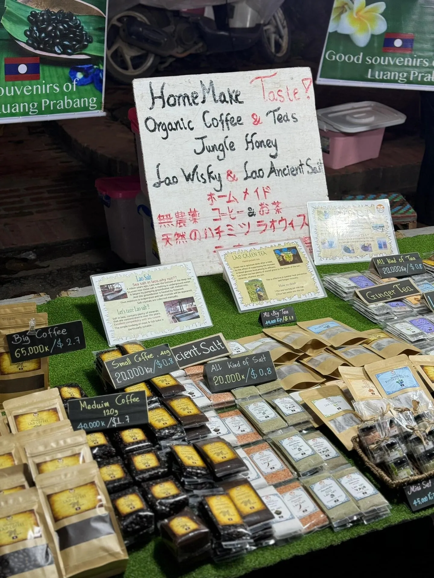值得一提的是一家类似法国风格的餐厅,虽然不是纯法餐,但有当地特色菜,味道不错。另外还有一家现做现烤的披萨店,口味也很好。Naga Creation是一家网红店铺,以小和尚冰箱贴闻名,据说整个老挝只此一家,价格已涨至15万老币一个。