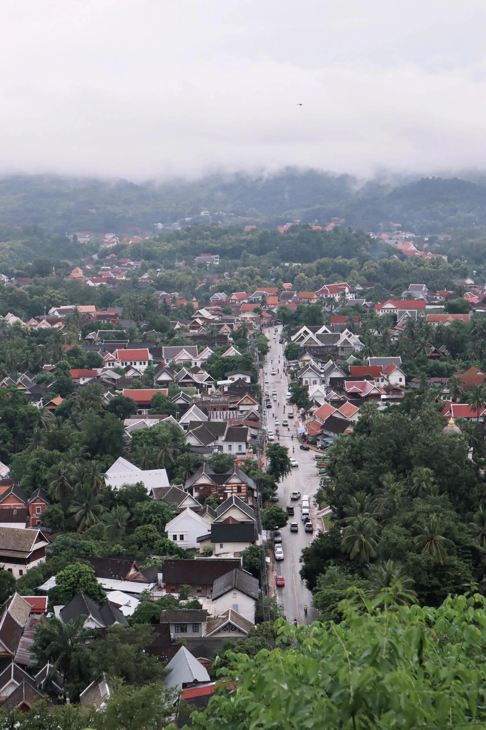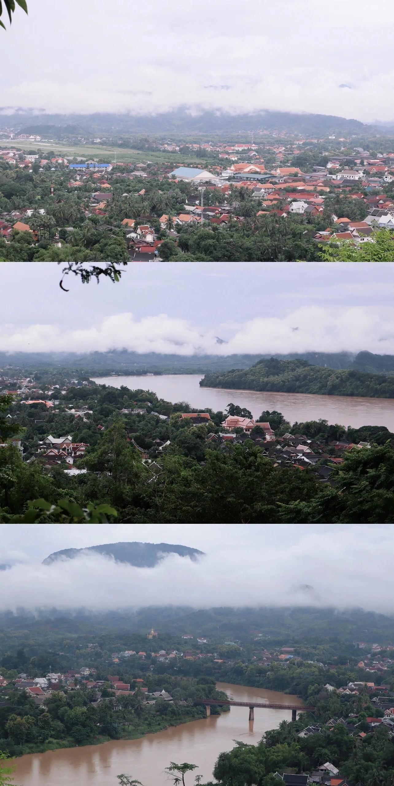 琅勃拉邦,老挝的古都和佛教中心,拥有众多历史遗址和寺庙。这座城市围绕着湄公河延伸,山水相依,地理条件优越。在雨季,琅勃拉邦时而下雨时而放晴,雨后的烟雾缭绕更增添了几分神秘感。