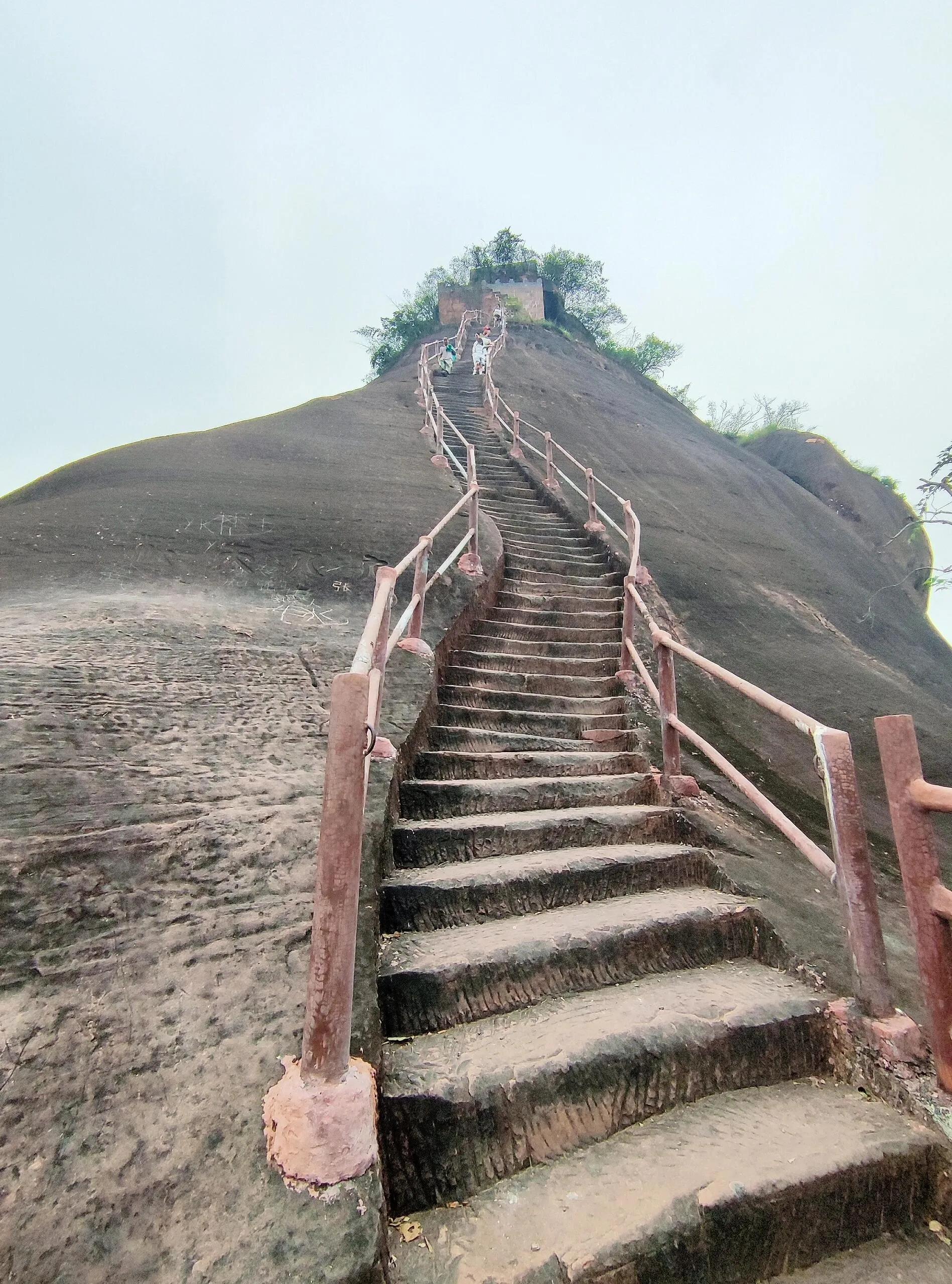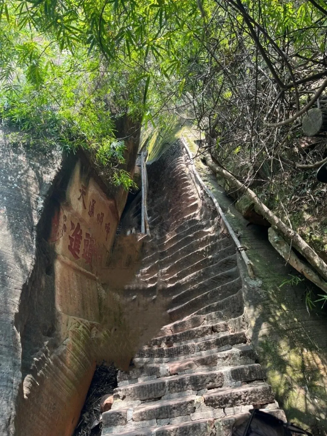 从阳元山票站出发,经过阳元石,来到云崖栈道。这里是最陡峭的地方,接近90度,非常刺激!继续前行到达嘉遁亭(山顶),然后经过细美寨、九九天梯,最后到达玄机台(日落观景点),再返回阳元山票站。