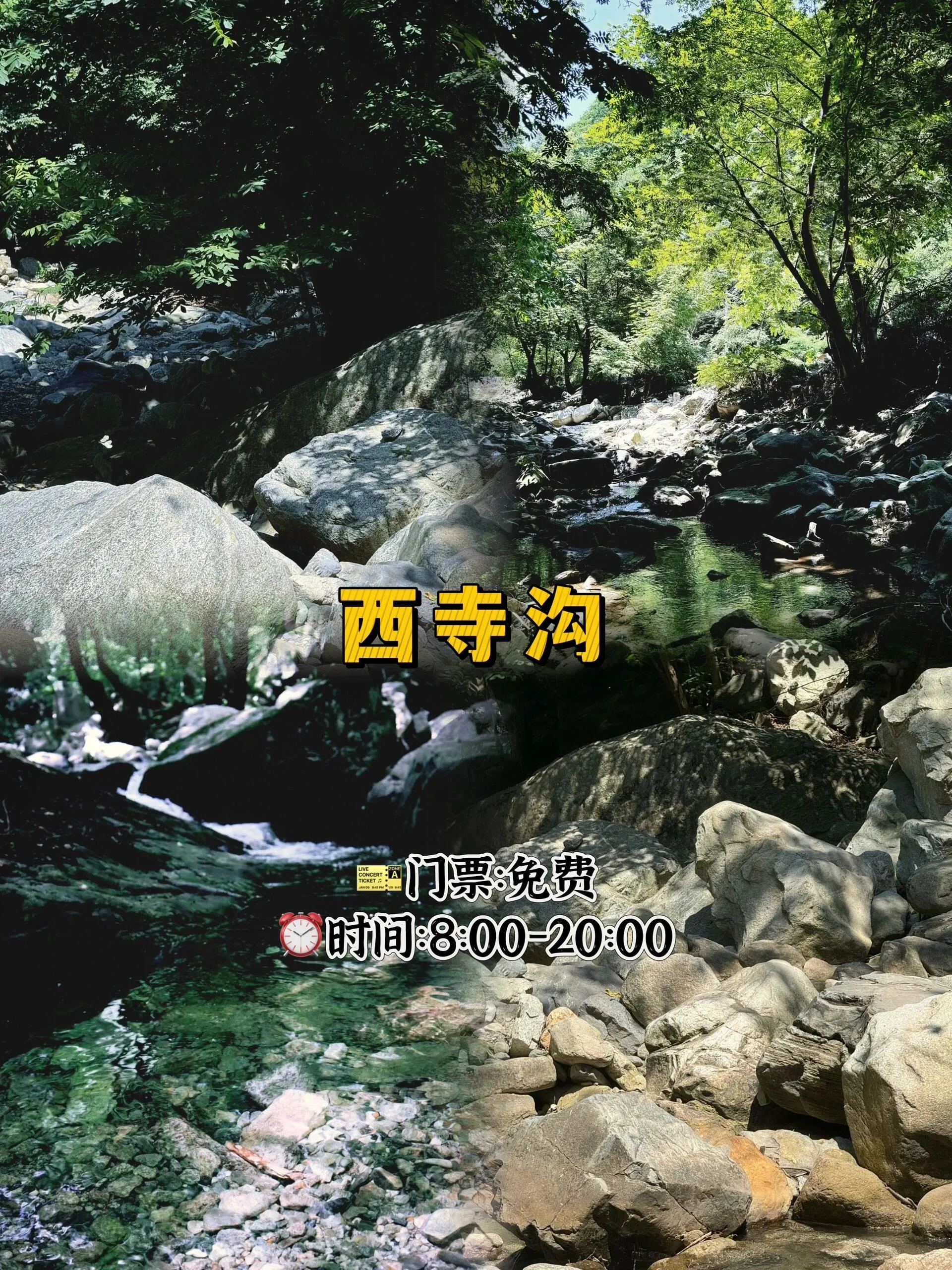 免费开放,时间为8:00-20:00。这里适合烧烤露营,玩水嬉戏,是避暑的好去处,非常适合周末带孩子来山里玩耍。