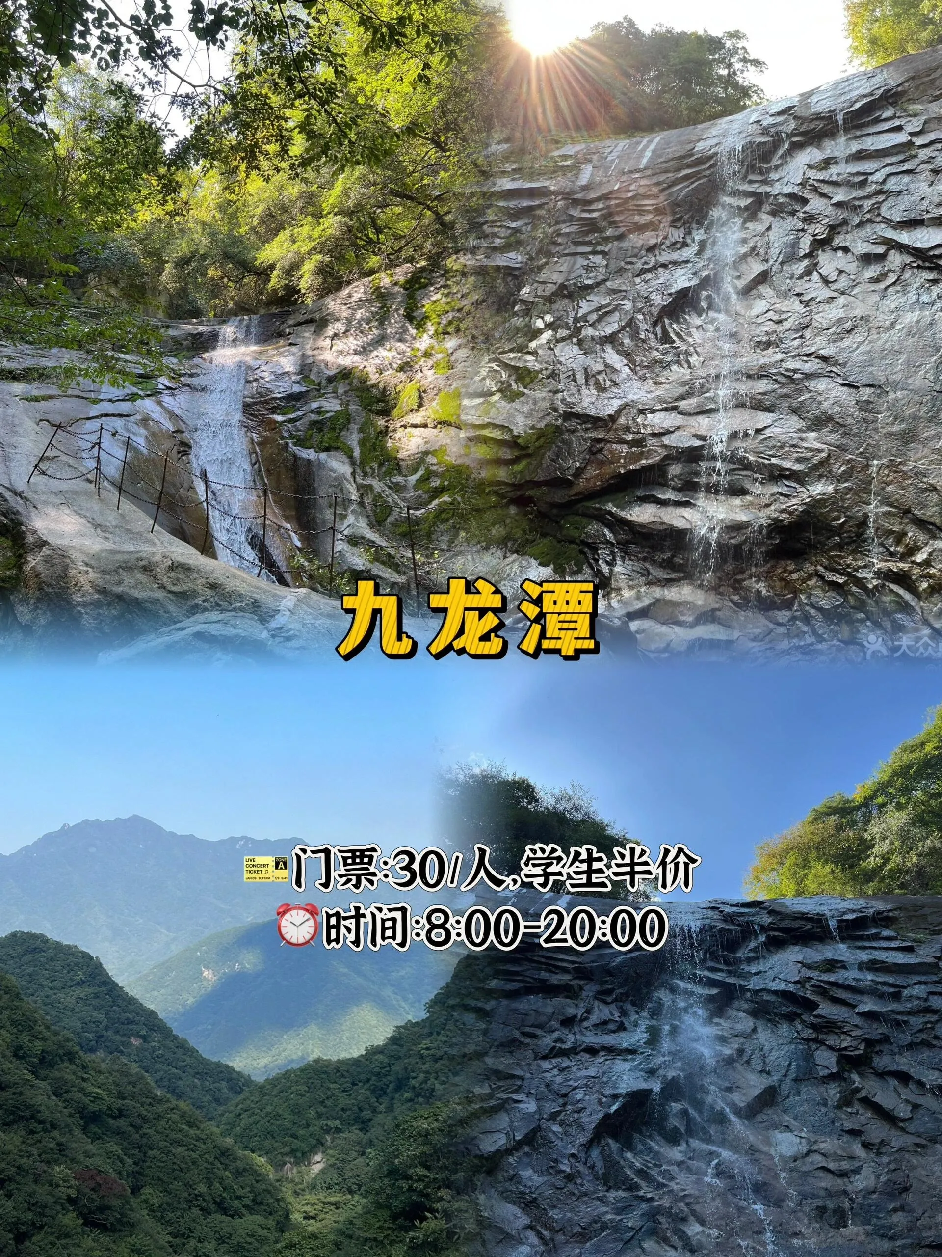 门票35元/人,学生半价,开放时间为8:00-20:00。这里有九个潭,目标很明确,可以定下小目标,去第几个。每到一个潭还挺有拍照打卡的仪式感。山脚下停车也比较方便。