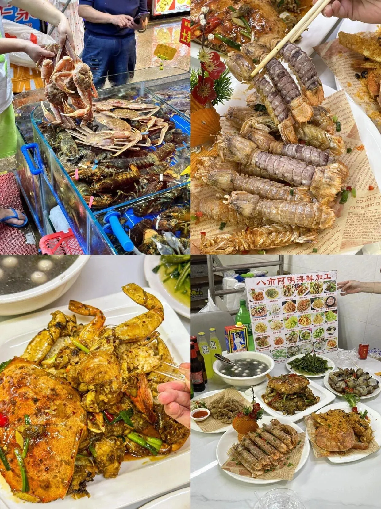 阿明海鲜加工店以其多样的海鲜菜品闻名 。椒盐皮皮虾、香辣大膏蟹、清蒸小青龙、香辣波士顿龙虾和海鲜拼盘爆炒都是深受欢迎的招牌菜,口味独特。