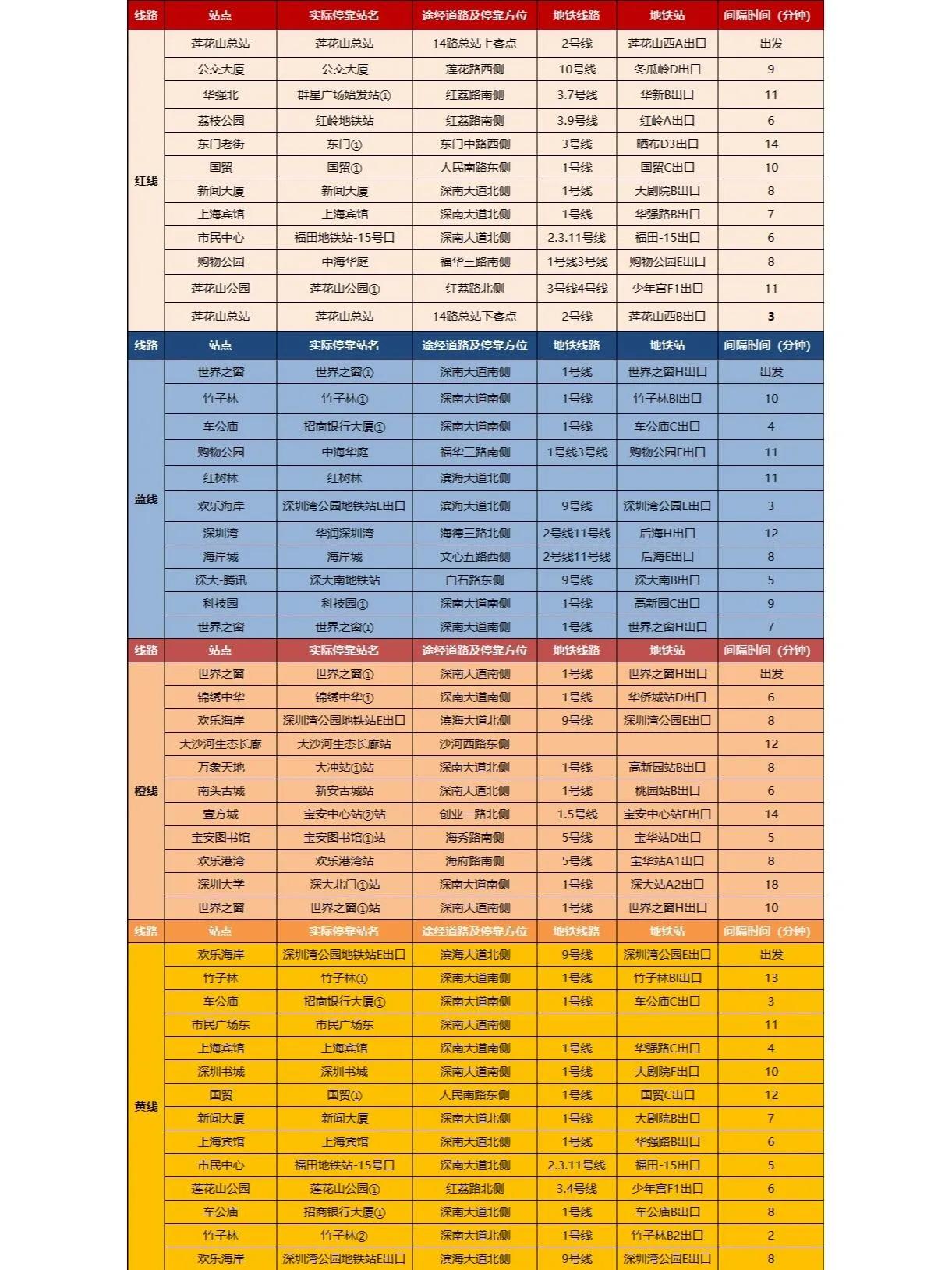深圳观光巴士共有四条线路,分别是红线、蓝线、橙线和黄线 ,每条线路都有其独特的主题和景点。