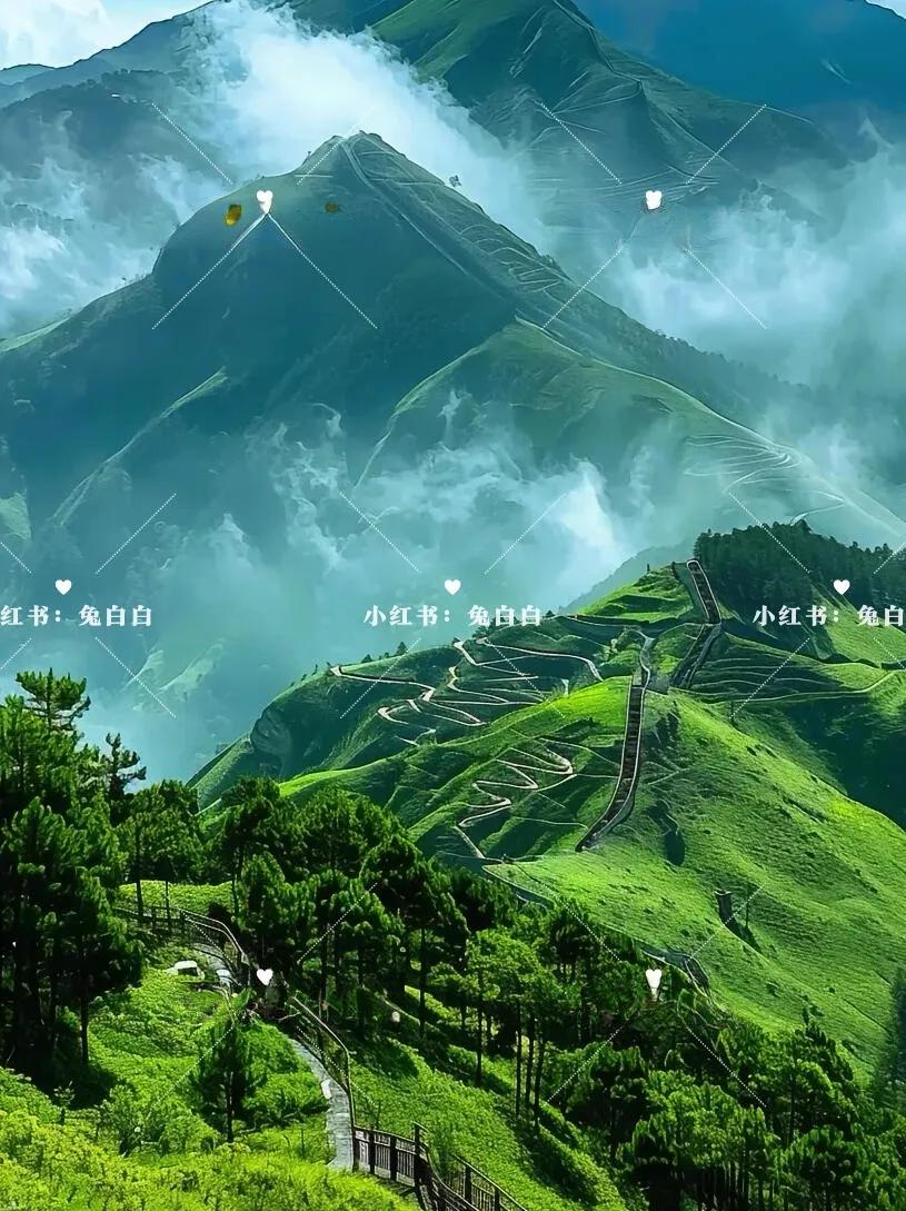 武功山以万亩草甸、日出云海和金顶万人打卡点闻名,可在萍乡站或萍乡北站乘坐大巴直达。