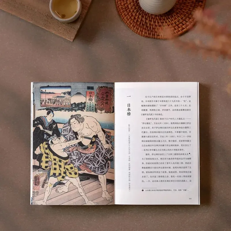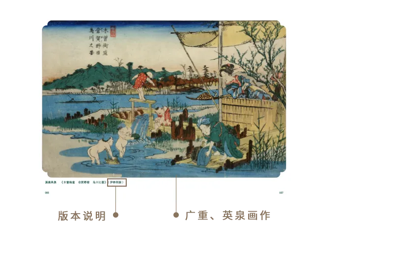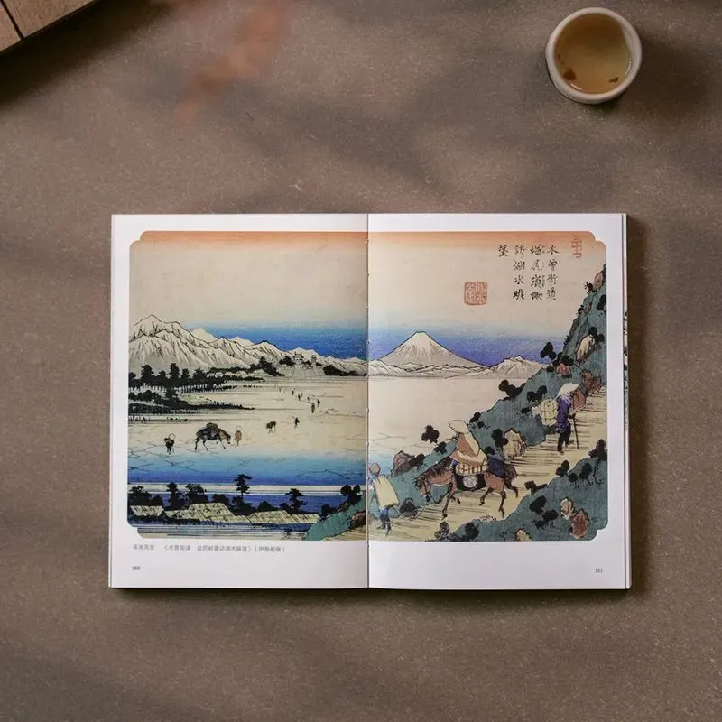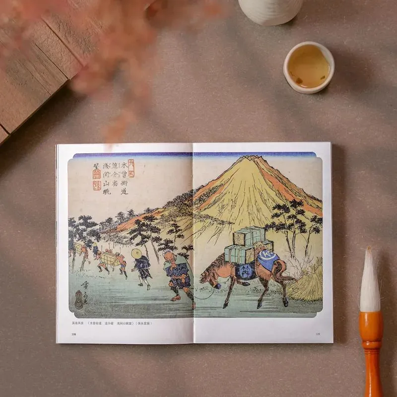 外封设计别具一格,正封选用溪斋英泉名画《鸿巢·吹上富士遥望》,背封则选用