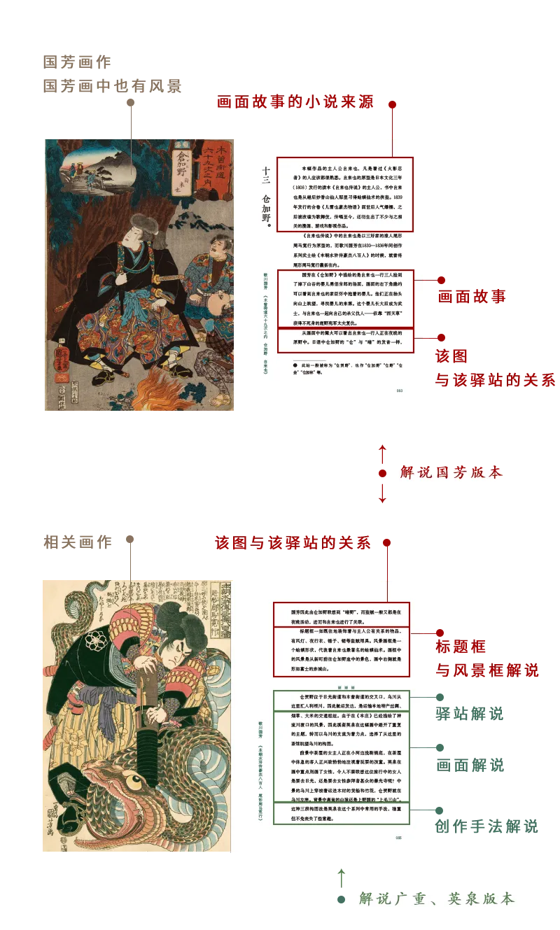 将每个宿场的风景微缩在主画面左上角的小幅画框中,以与故事有关的器物为背景进行刻画