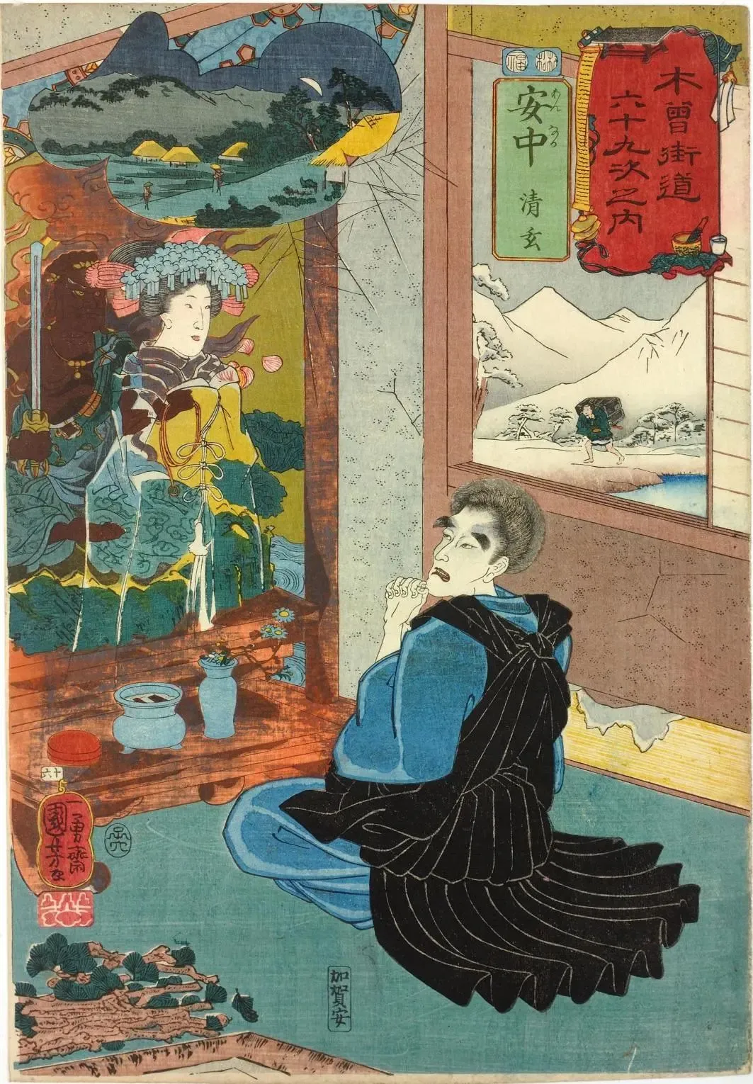 ,便邀请人气画师溪斋英泉以木曾街道沿途69个驿站为题材进行创作。