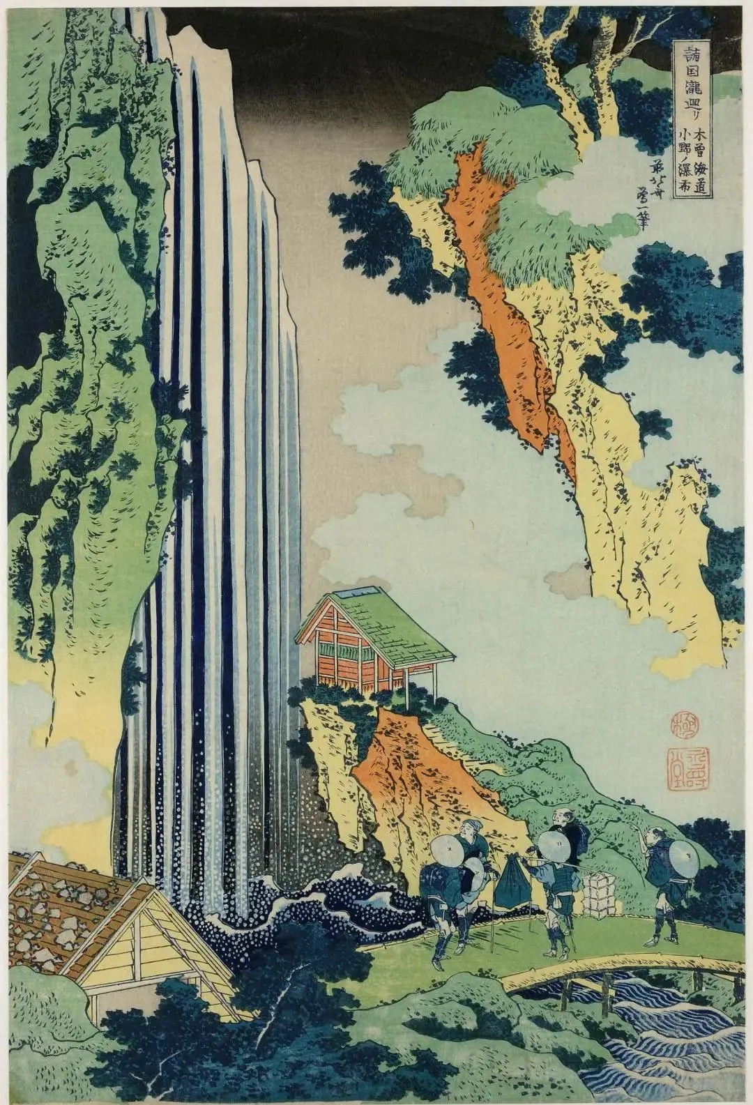 下左:葛饰北斋《诸国泷廻 木曾海道 小野瀑布》