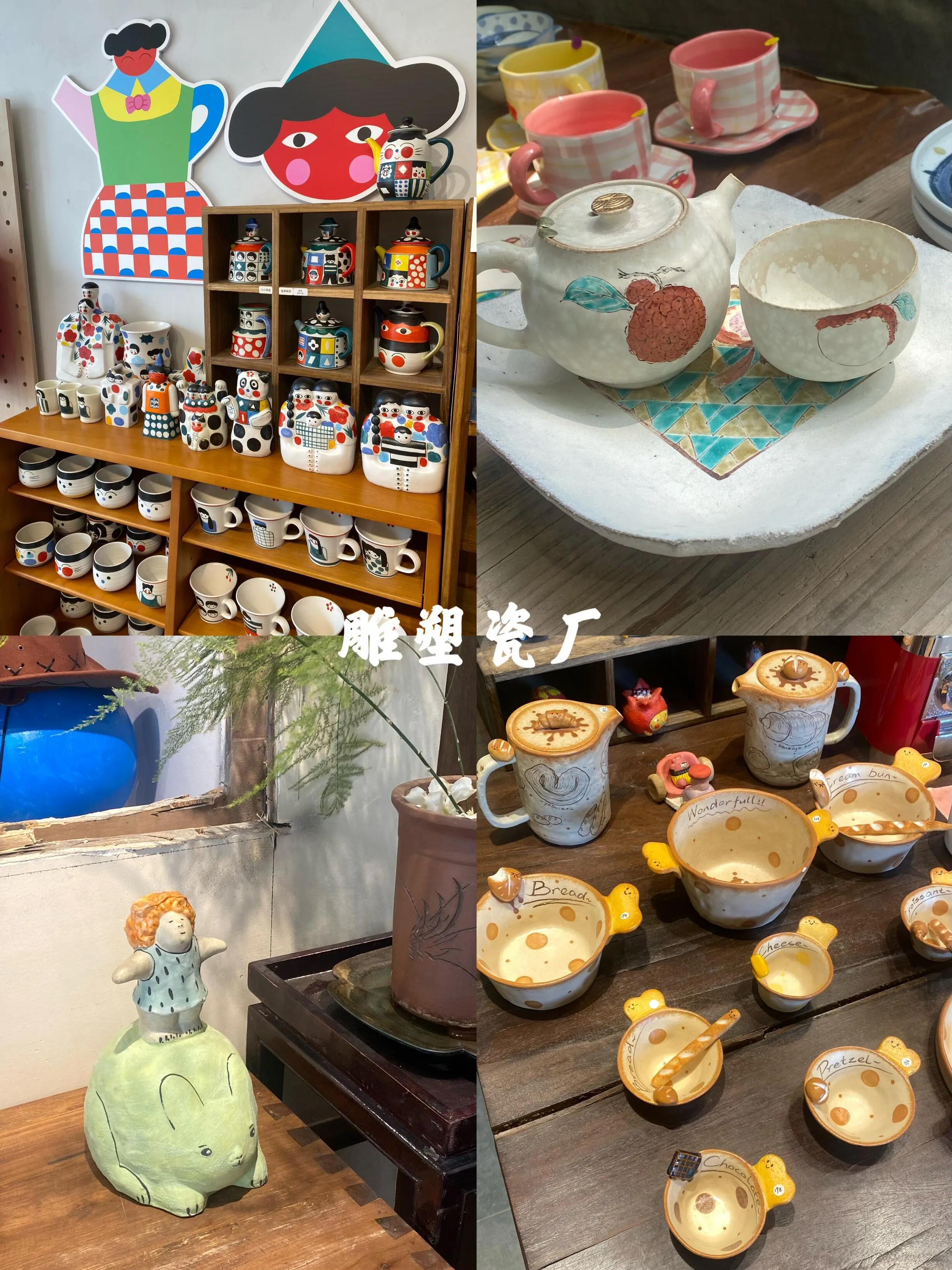 之后可以前往雕塑瓷厂,这里有众多摊位和体验馆。如果想打卡网红陶器店,可以选择靠近南门的区域,如迩边集、在野、原来是泥、蓝π咖啡等。北门入口处的禾夕器也很精致值得一逛。